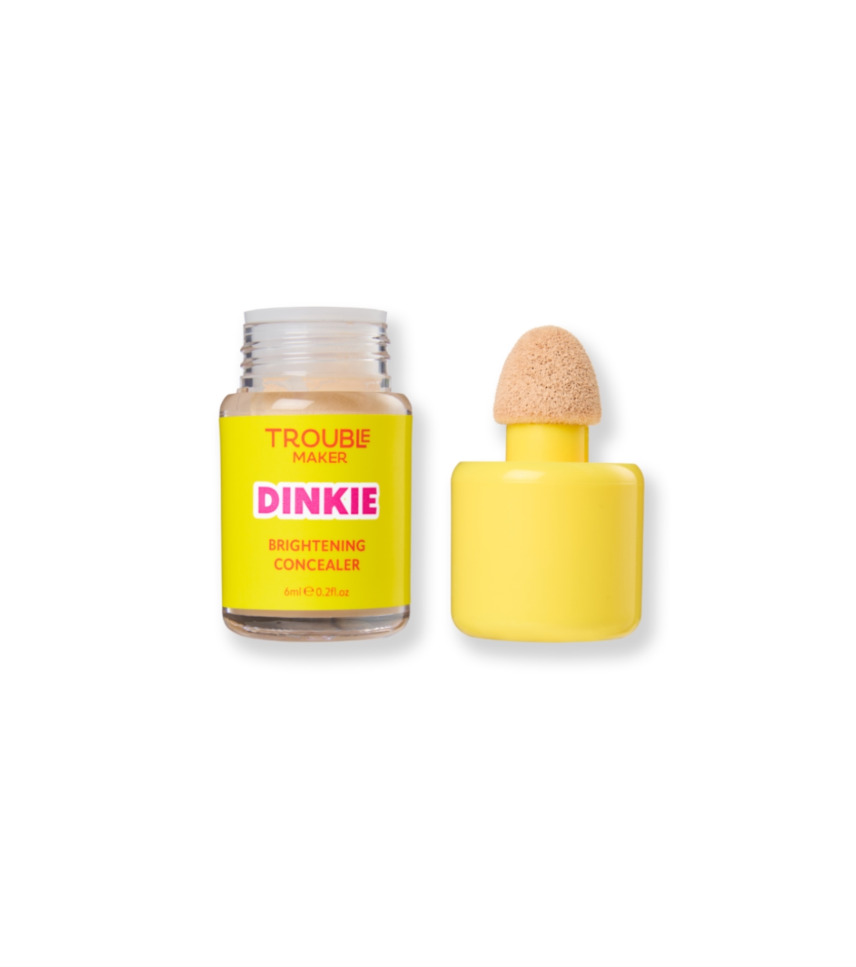 Descubra o corretivo iluminador Dinkie da Trouble Maker que oferece cobertura média modulável com um acabamento fresco, hidratado e radiante.