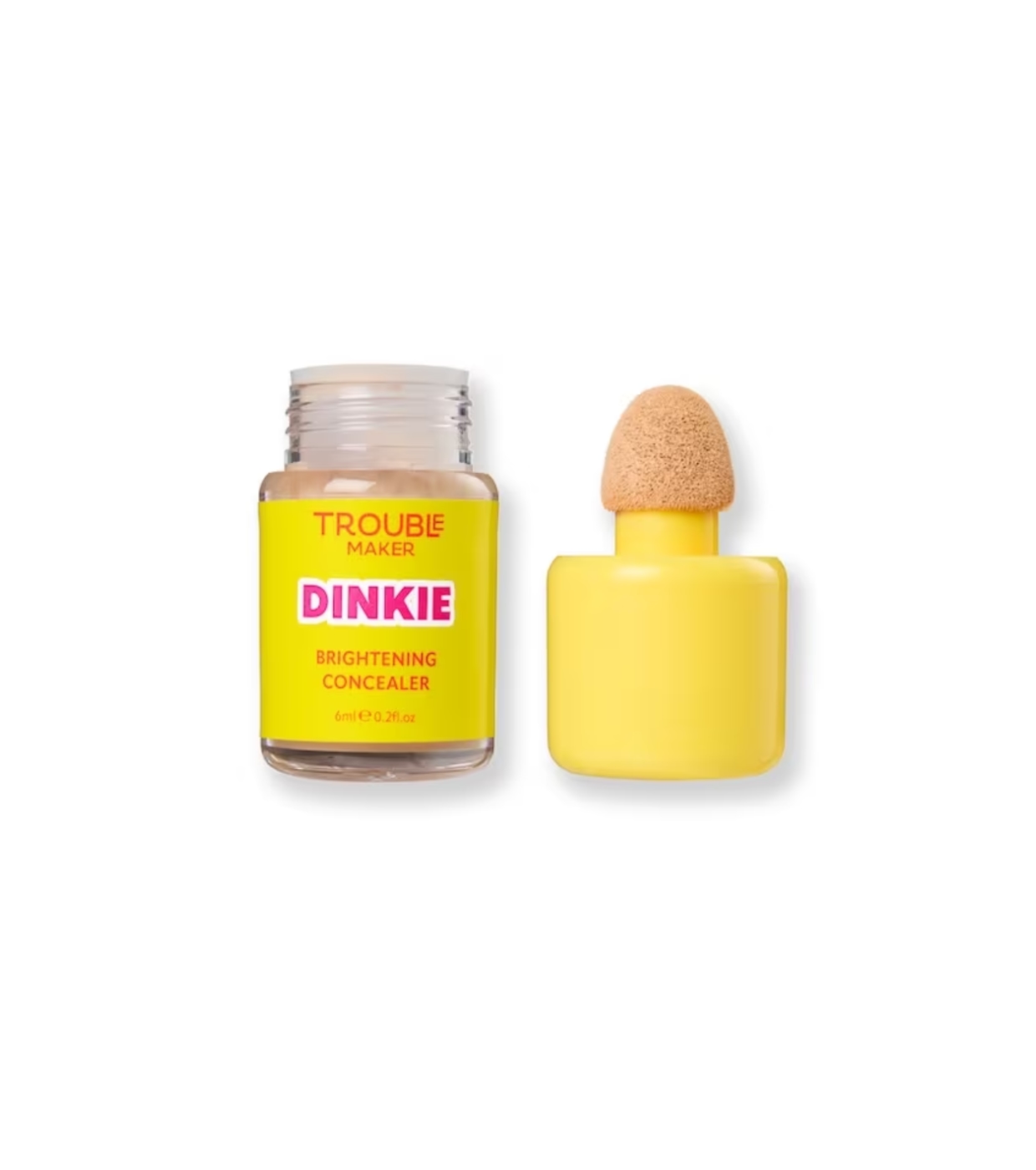 Descubra o corretivo iluminador Dinkie da Trouble Maker que oferece cobertura média modulável com um acabamento fresco, hidratado e radiante.