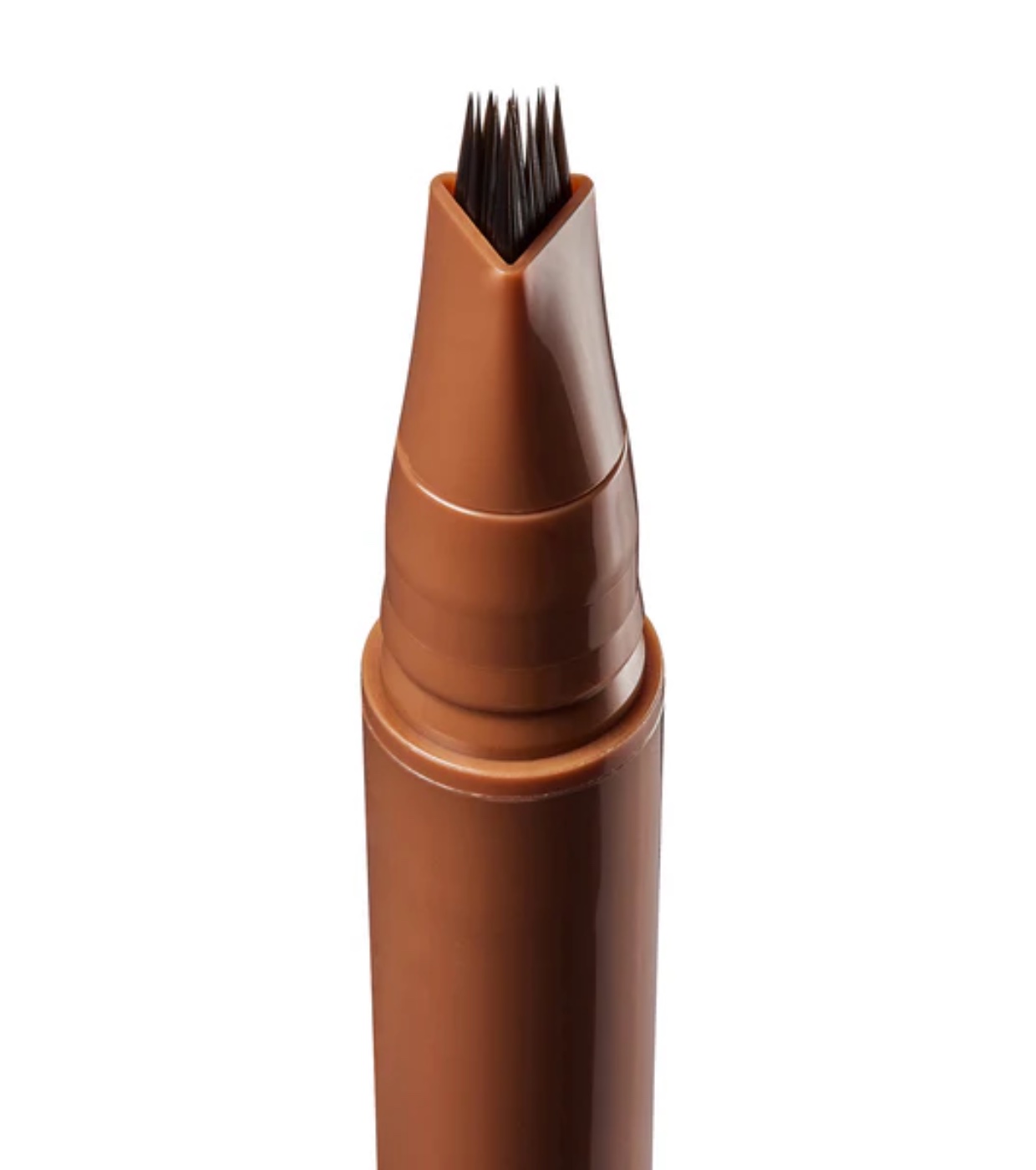 Este lápis de sobrancelha Fluffer Brow Brush Natural da Trouble Maker destaca-se pelo seu aplicador triangular inovador com ponta de cerdas, concebido para imitar o traço dos pelos reais e preencher com precisão até as áreas mais esparsas.