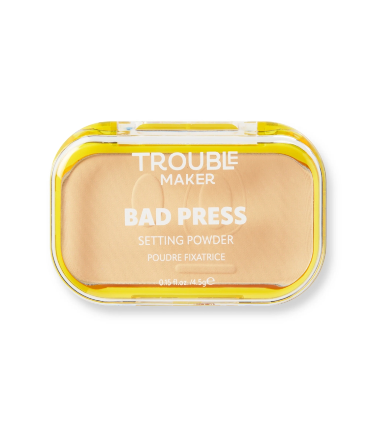 O pó fixador Trouble Maker Bad Press é o segredo para um acabamento matte suave, natural e sem brilho que mantém sua maquiagem impecável por horas.