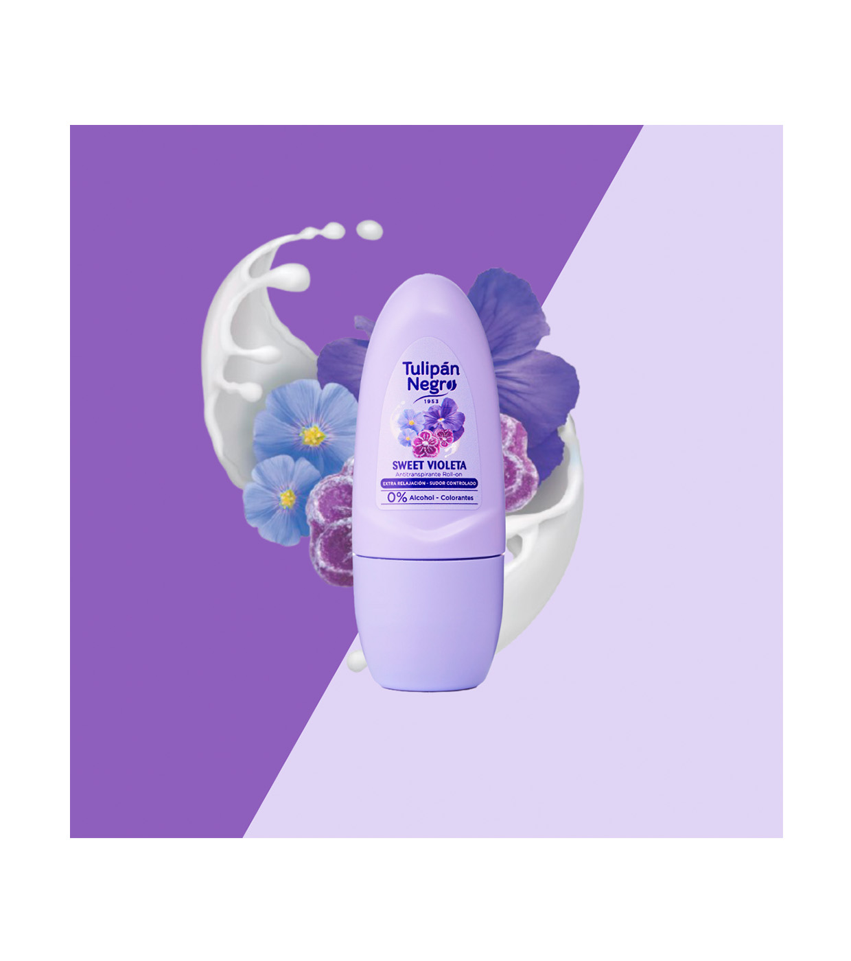 O desodorante transpirante roll-on Black Tulip Sweet Violet possui uma fórmula altamente eficaz que mantém a área das axilas