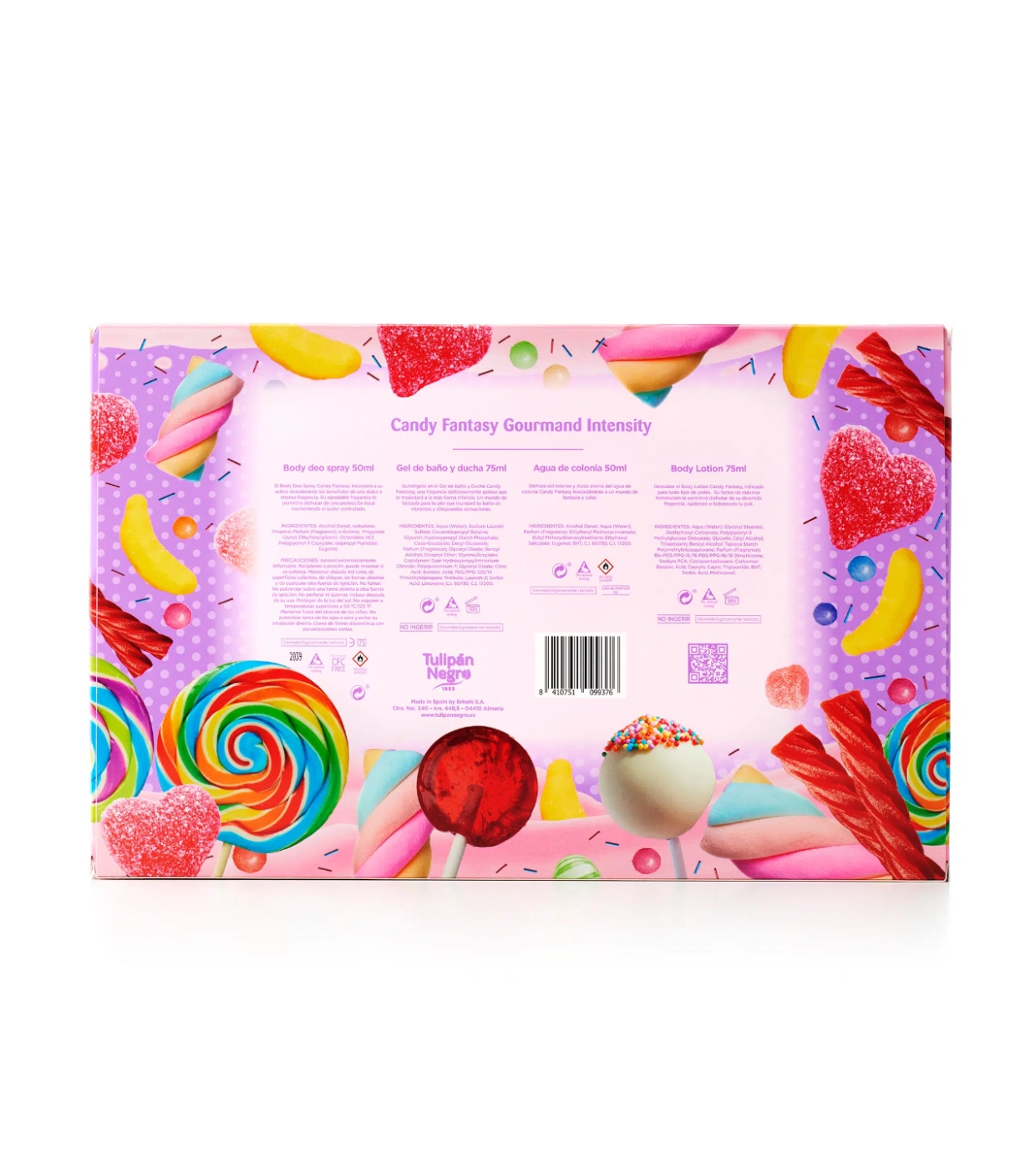 - 1 x Gel de banho (75ml): A sua fragrância deliciosamente doce irá transportá-lo até à sua primeira infância, inundando a sua casa de banho com sensações vibrantes e cintilantes.