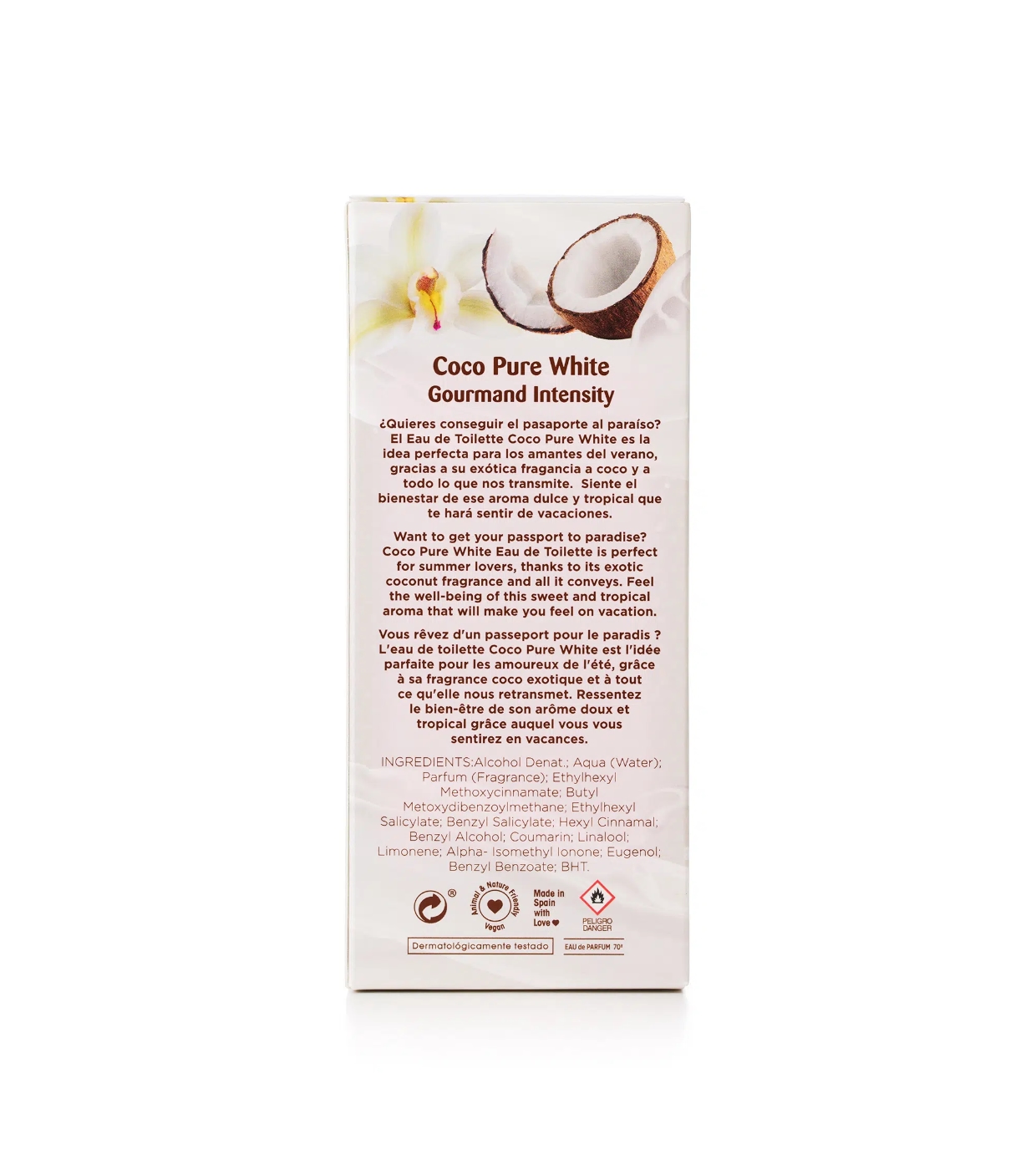 Capture as notas tropicais do coco e suas essências naturais para criar um perfume fresco e duradouro na pele.