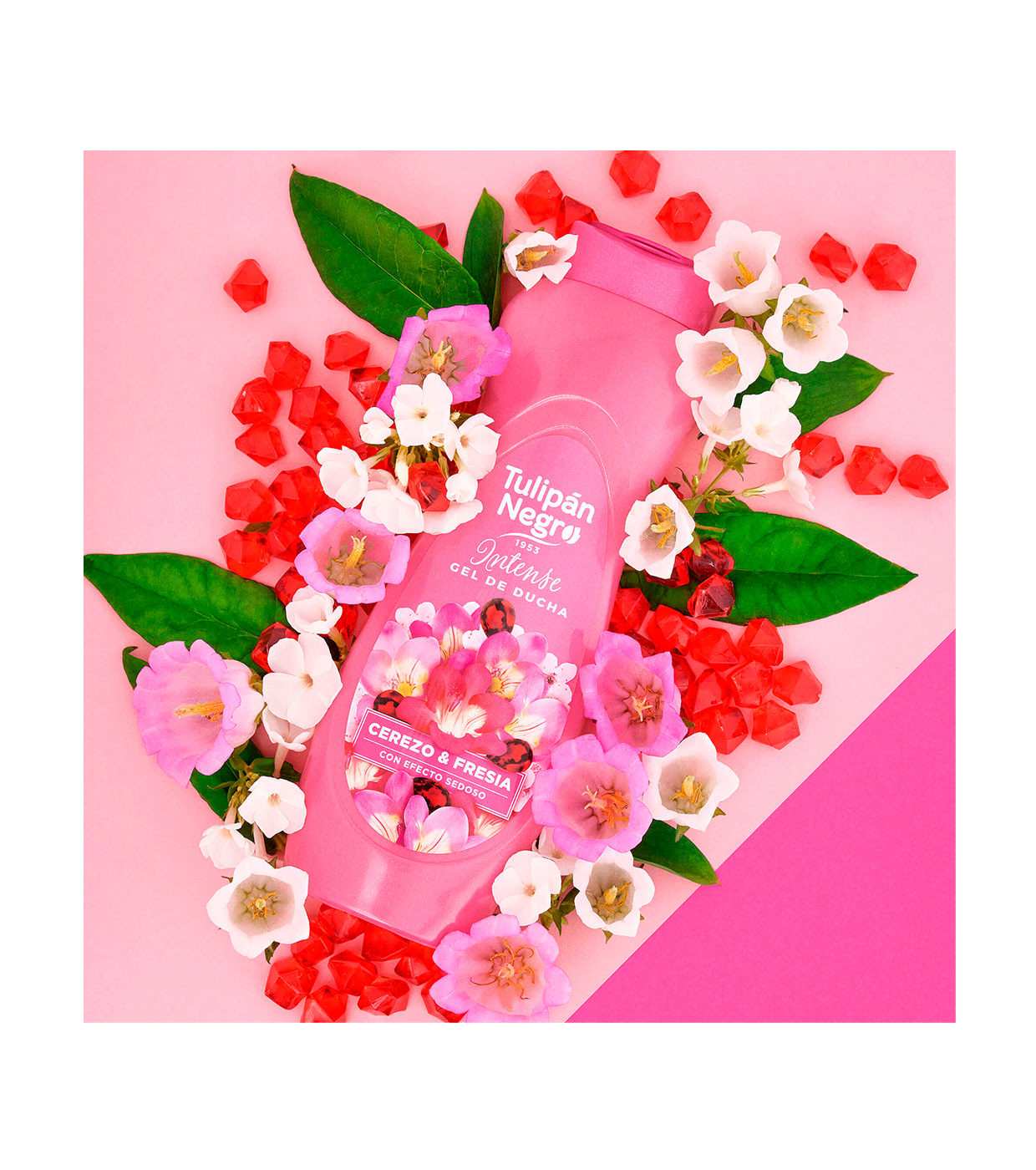 O gel de banho e banho Cereja e Frésia contém uma fragrância romântica e delicada. Inspirado nas flores de