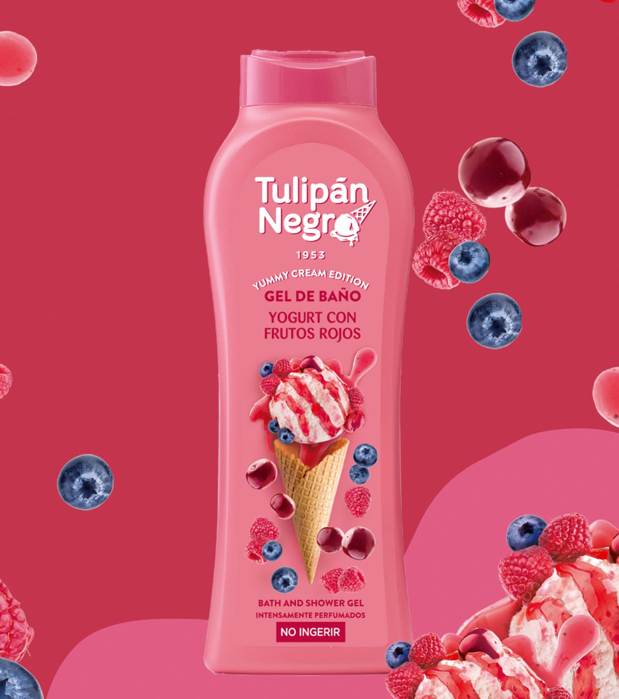 Gel de banho 650ml Yogurt con Frutos Rojos da linha Yummy Cream Edition da Tulipán Negro.