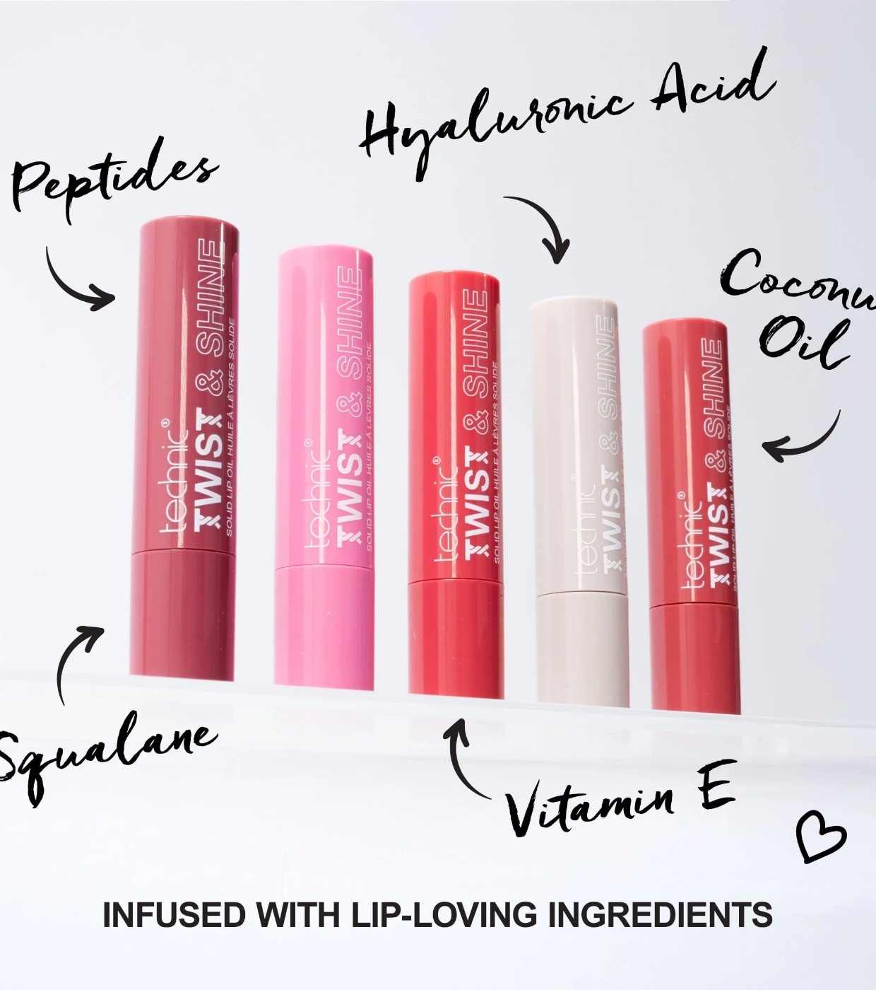 Lábios brilhantes e hidratados em apenas um clique! Technic O Óleo Labial Sólido Colorido é um produto híbrido prático que combina as propriedades nutritivas do protetor labial com as qualidades hidratantes do óleo labial.