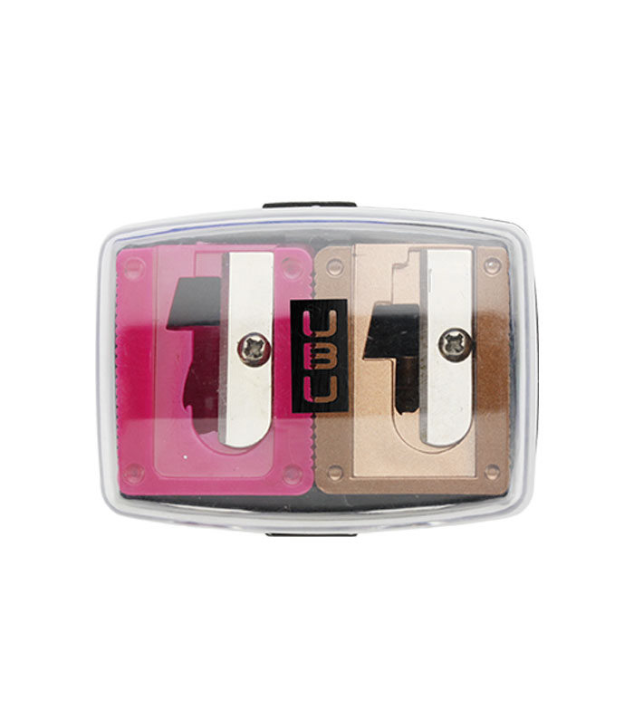 Double-barrelled dynamo. Designed specifically to sharpen soft cosmetic pencils. Use with eye, lip and concealer pencils.