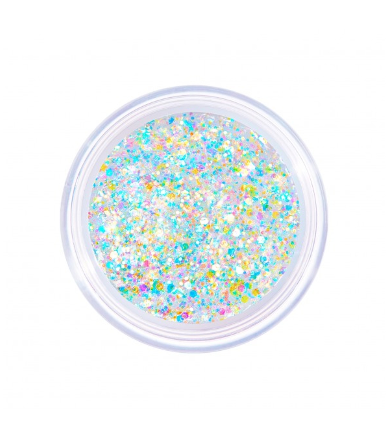Este incrível gel com partículas de glitter de diferentes tamanhos pode ser usado no rosto, corpo e cabelo para adicionar um brilho espetacular.
