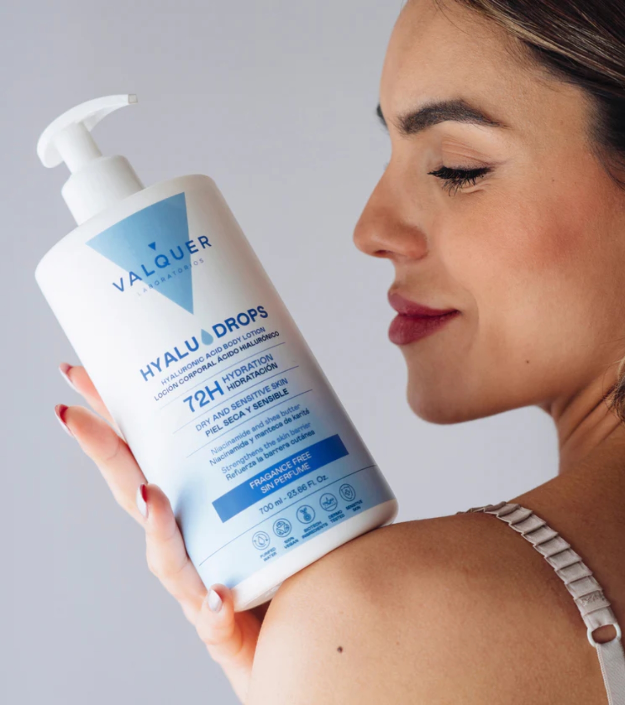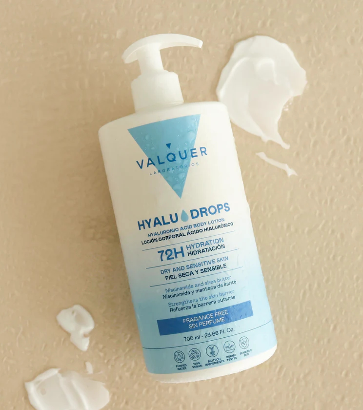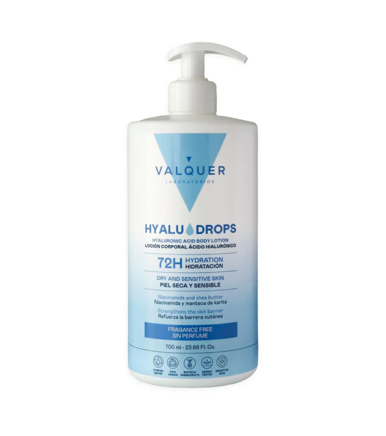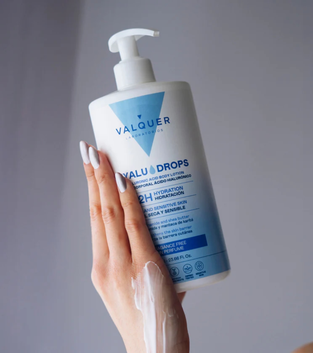 Descubra o poder da hidratação essencial com a loção corporal sem fragrância Hyaludrops da Valquer , uma fórmula minimalista projetada para hidratar intensamente por 72 horas sem irritar sua pele.