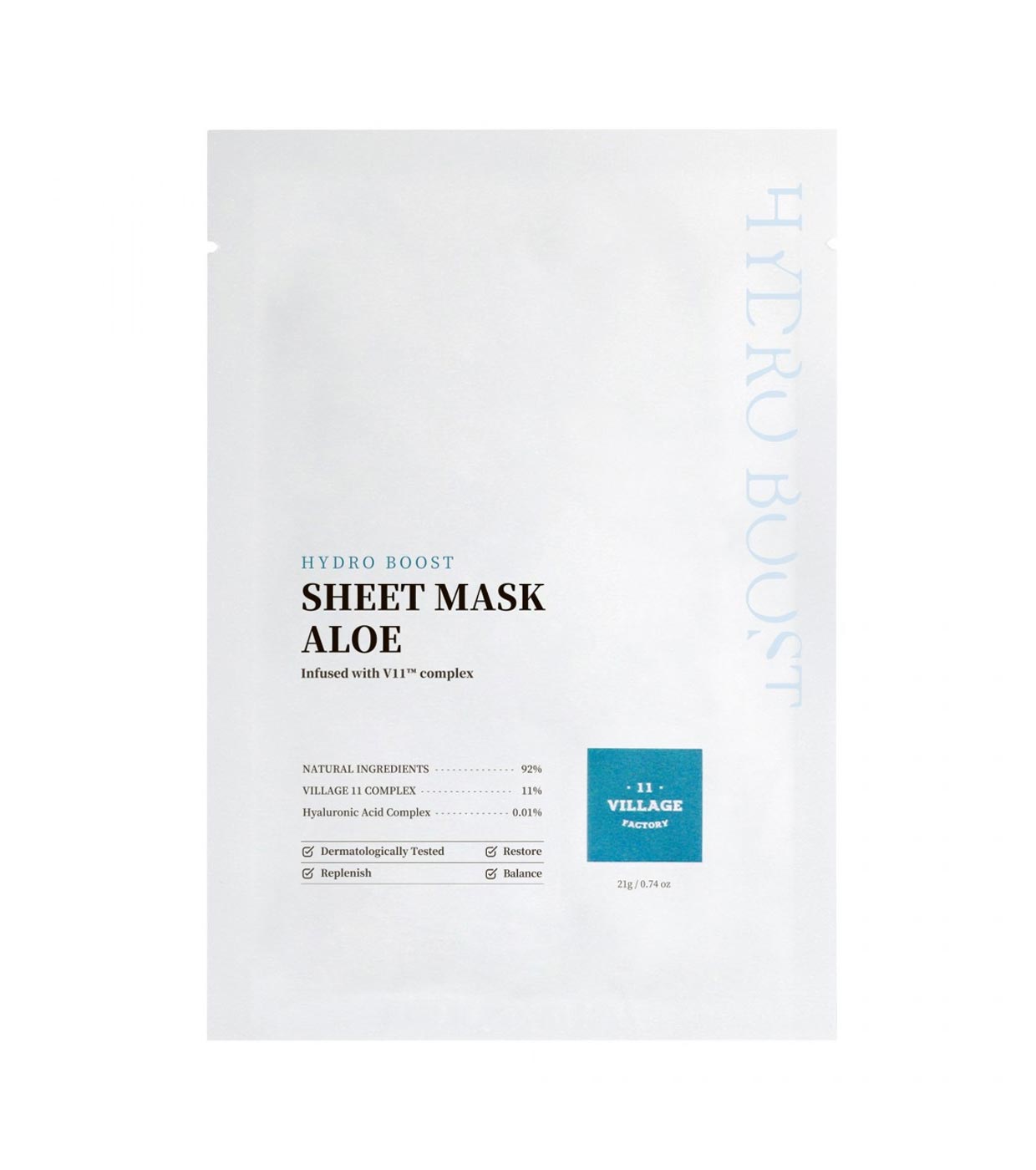 Máscara facial de tecido refrescante com Aloe Vera Hydro Boost da Village 11 Factory.