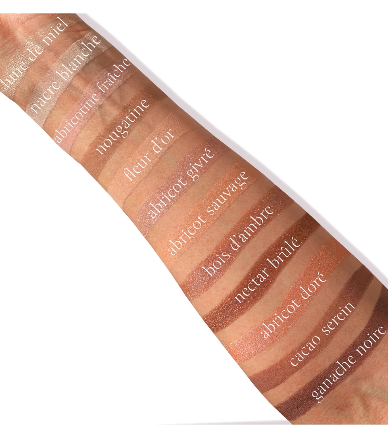 Shade 1 (Lune de Miel): Calcium Sodium Borosilicate, Octyldodecyl Stearoyl Stearate, Synthetic Fluorphlogopite, Calcium Aluminum Borosilicate, Talc, Zinc Stearate, Silica. Shades 2 (Nacre Blanche), 3 (Abricotine Fraîche), 4 (Nougatine), 5 (Fleur d'Or), 11 (Cacao Serein): Talc, Octyldodecyl Stearoyl Stearate, Zinc Stearate. Shade 6 (Abricot Givré): Calcium Sodium Borosilicate, Octyldodecyl Stearoyl Stearate, Calcium Aluminum Borosilicate, Silica, Zinc Stearate, Talc. Shade 7 (Abricot Sauvage): Talc, Lauroyl Lysine, Octyldodecyl Stearoyl Stearate, Zinc Stearate. Shade 8 (Bois d'Ambre): Calcium Sodium Borosilicate, Calcium Aluminum Borosilicate, Octyldodecyl Stearoyl Stearate, Talc, Zinc Stearate, Silica, Synthetic Fluorphlogopite. Shade 9 (Nectar Brûlé): Calcium Sodium Borosilicate, Talc, Octyldodecyl Stearoyl Stearate, Zinc Stearate, Synthetic Fluorphlogopite, Silica. Shade 10 (Abricot Doré): Octyldodecyl Stearoyl Stearate, Synthetic Fluorphlogopite, Calcium Sodium Borosilicate, Zinc Stearate. Shade 12 (Ganache Noire): Octyldodecyl Stearoyl Stearate, Talc, Zinc Stearate. (May Contain +/-: Mica CI 77019, Titanium Dioxide CI 77891, Iron Oxides CI 77491/ 77499/ 77492, Synthetic Fluorphlogopite, Ultramarines Blue CI 77007, Red 40 Lake CI 16035, Aluminum CI 77000, Tin Oxide CI 77861, Yellow 5 Lake CI 19140, Carmine CI 75470, Sodium
