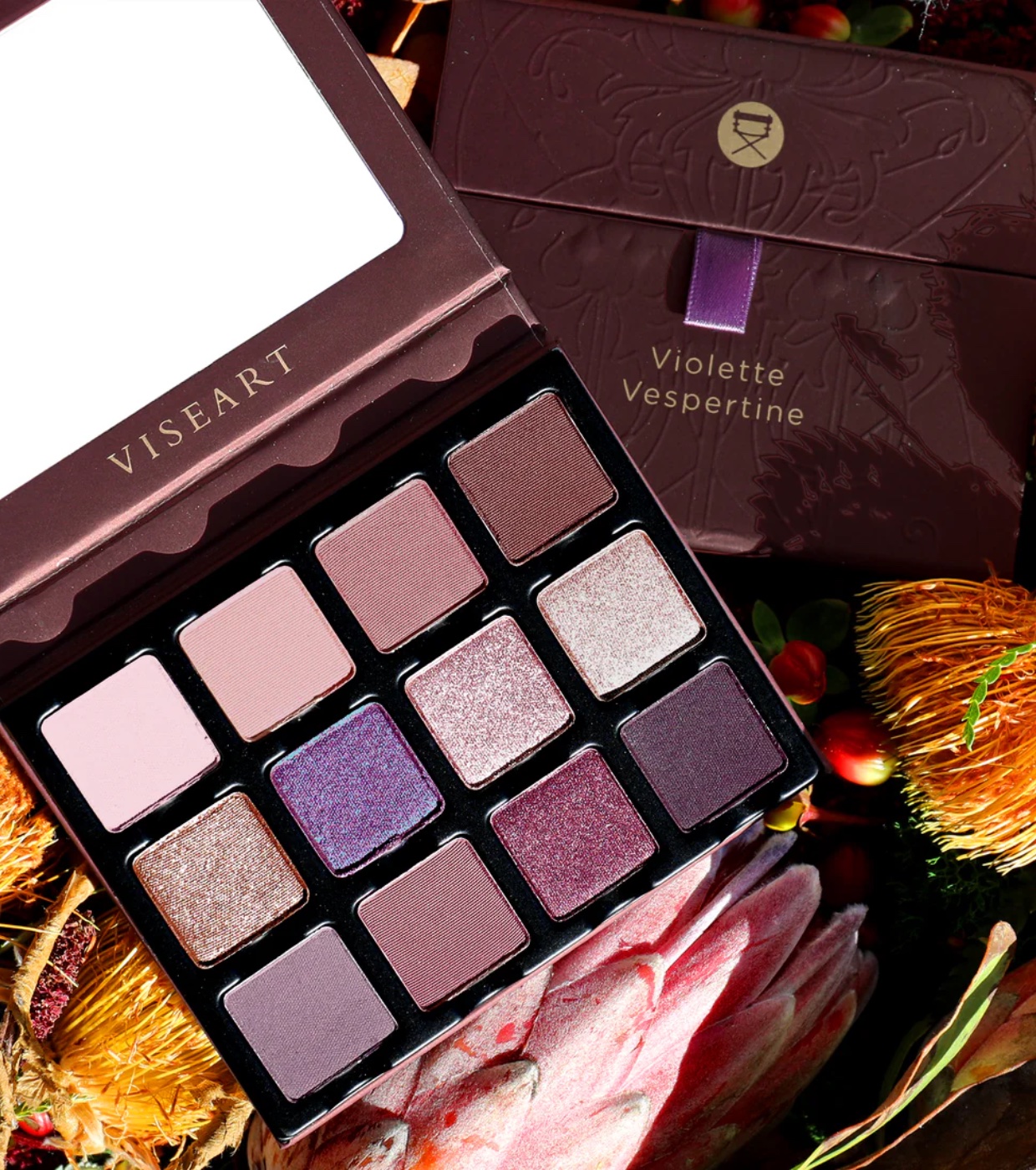 A paleta de sombras Viseart Viseart é composta por doze tons cativantes, embalados nos braços encantadores da noite.