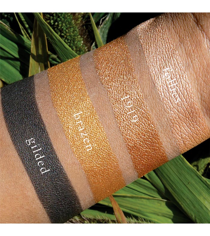 Shade 1 (Follies): Talc, Mica, Octyldodecyl Stearoyl Stearate, Zinc Stearate. Shade 2 (1919): Mica, Synthetic Fluorphlogopite, Octyldodecyl Stearoyl Stearate, Talc, Zinc Stearate.shade 3 (Brazen): Mica, Calcium Sodium Borosilicate, Octyldodecyl Stearoyl Stearate, Talc, Zinc Stearate. Shade 4 (Gilded): Mica, Talc, Octyldodecyl Stearoyl Stearate, Zinc Stearate. Vegan Shades: 1,2,3. (May Contain +/- Iron Oxides Ci 77491/ 77492/ 77499, Titanium Dioxide Ci 77891, Ferric Ferrocyanide Ci 77510, Tin Oxide, Black 2 Cl 77266, Alumina, Carmine Ci 75470, Silica, Sodium Benzoate, Potassium Sorbate).