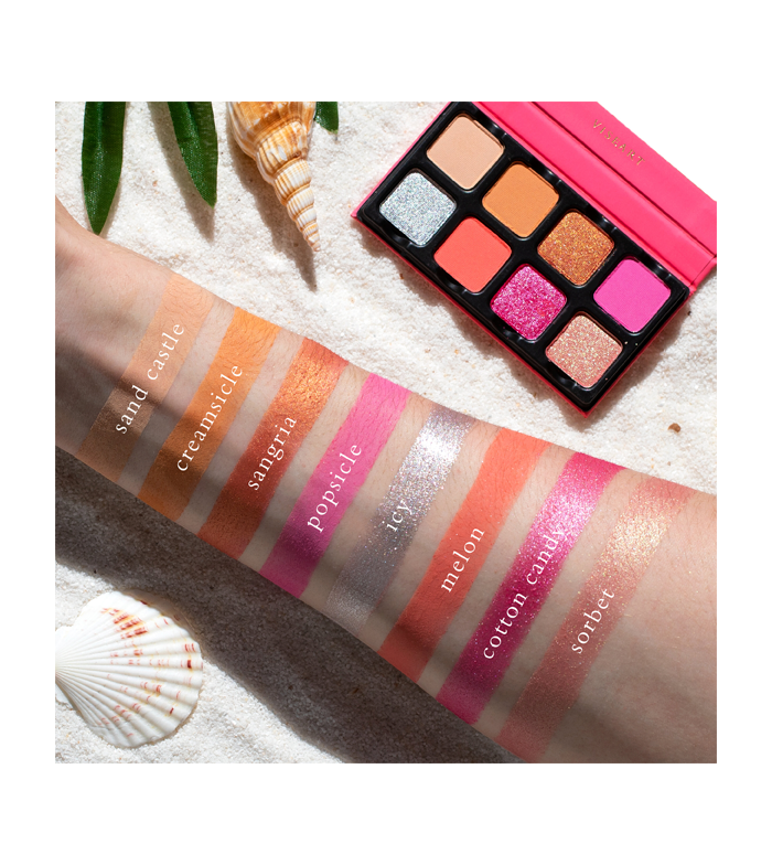 Shades 1 (Sand Castle), 2 (Creamsicle), 4 (Popsicle), 6 (Melon): Talc, Mica, Ocyldodecyl Stearoyl Stearate, Zinc Stearate. Shades 3 (Sangria), 7 (Cotton Candy): Mica, Ocyldodecyl Stearoyl Stearate, Talc, Zinc Stearate. Shade 5 (Icy): Talc, Ocyldodecyl Stearoyl Stearate, Silica, Zinc Stearate, Mica. Shade 8 (Sobet): Calcium Aluminum Borosilicate, Mica, Ocyldodecyl Stearoyl Stearate, Talc, Silica, Zinc Stearate. (May Contain +/- : Titanium Dioxide CI 77891, Iron Oxides CI 77491/77492/77499, Ultramarines Blue CI 77007, Synthetic Fluorphlogopite, Tin Oxide CI 77861, Carmine CI 75470, Yellow 5 Lake CI 19140, Red 27 Lake CI 45410, Red 28 CI45410, Red 7 Lake CI 15850, Aluminum CI 77000.)