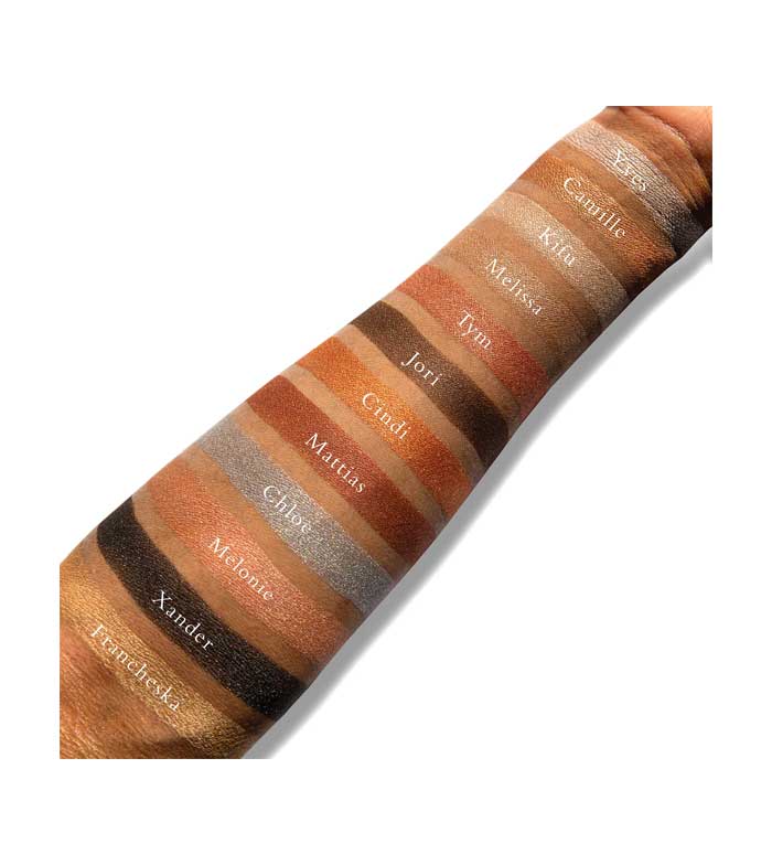 Shades 1 (Yves), 3 (Kifu): Talc Calcium Aluminum Borosilicate, Octyldodecyl Stearoyl Stearate, Zinc Stearate, Silica. Shades 2 (Camille), 4 (Melissa), 10 (Melonie), 12 (Francheska): Talc, Calcium Aluminum Borosilicate, Octyldodecyl Stearoyl Stearate, Zinc Stearate. Shades 5 (Tym), 6 (Jori): Talc, Octyldodecyl Stearoyl Stearate, Zinc Stearate. Shades 7 (Cindi), 8 (Mattias): Talc, Octyldodecyl Stearoyl Stearate, Zinc Stearate, Silica. Shade 9 (Chloe): Talc, Octyldodecyl Stearoyl Stearate, Zinc Stearate, Silica. Shade 11 (Xander): Octyldodecyl Stearoyl Stearate, Talc, Zinc Stearate.