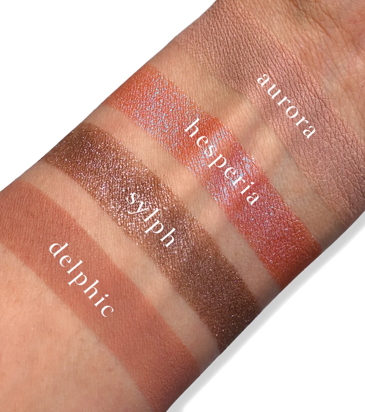 Shades 1 (Aurora), 4 (Delphic): Talc, Octyldodecyl Stearoyl Stearate, Zinc Stearate. Shade 2 (Hesperia): Calcium Sodium Borosilicate, Octyldodecyl Stearoyl Stearate, Synthetic Fluorphlogopite. Shade 3 (Sylph): Calcium Sodium Borosilicate, Octyldodecyl Stearoyl Stearate, Talc. (May Contain +/-: Iron Oxides CI 77491/77499, Manganese Violet CI 77742, Mica CI 77019, Sodium Dehydroacetate, Synthetic Sapphire, Tin Oxide Cl 77861, Titanium Dioxide CI 77891, Ultramarines Blue CI 77007).