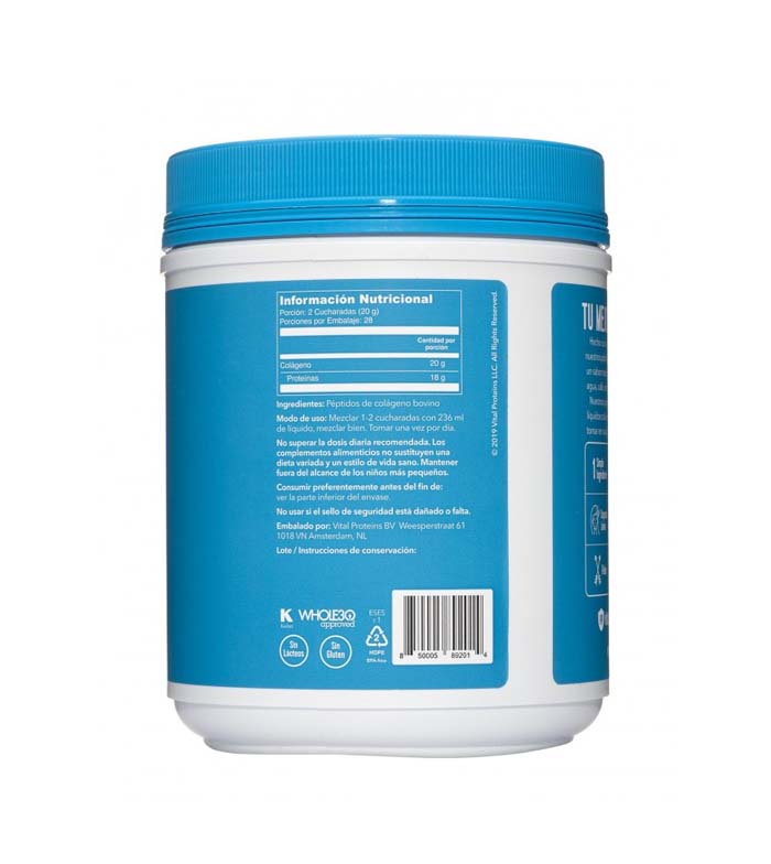 - Cada dose fornece 20 gramas de peptídeos de colágeno, extraídos da pele de vacas criadas ao ar livre e alimentadas com capim.