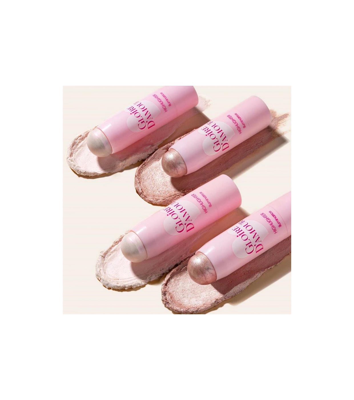 Seu formato em bastão permite aplicar o iluminador diretamente na pele e depois misturá-lo com a ponta dos dedos para dar à pele um brilho suave e natural e iluminar certas áreas do rosto.