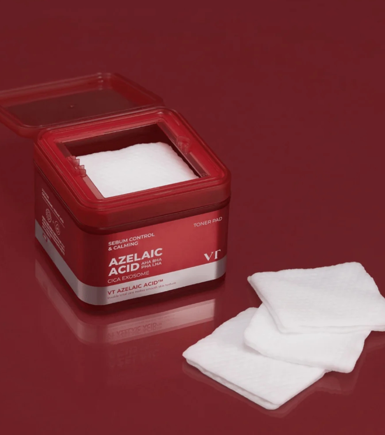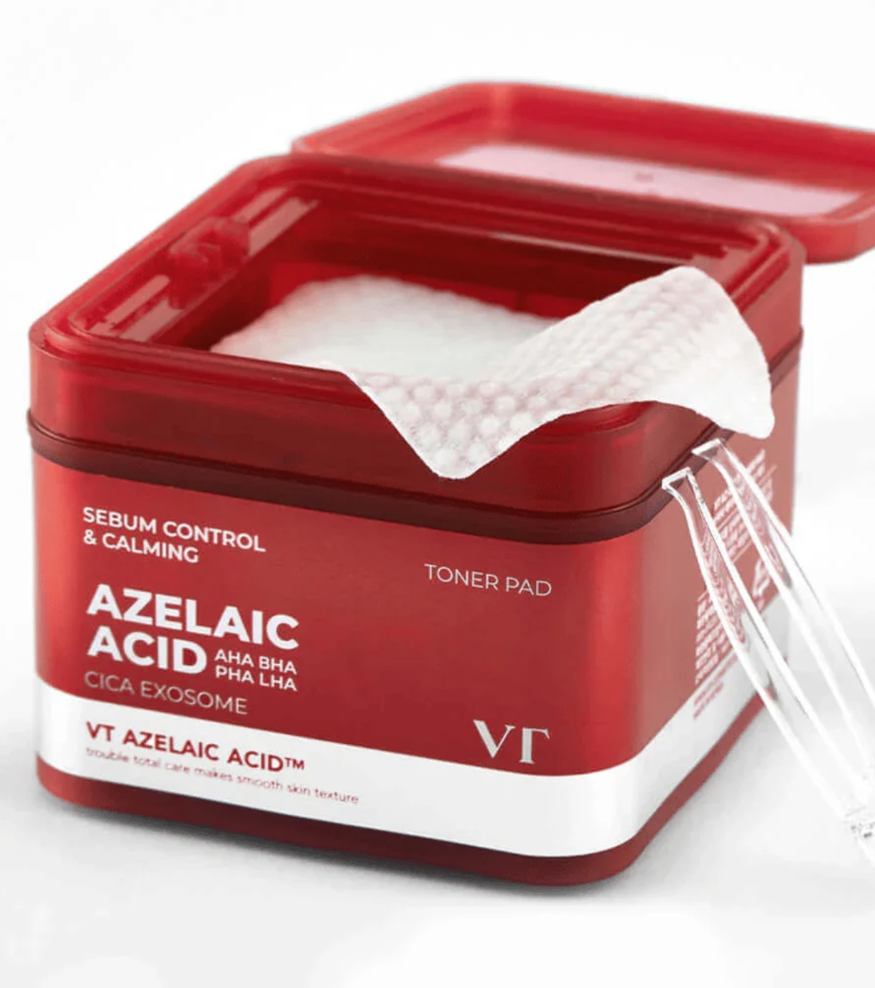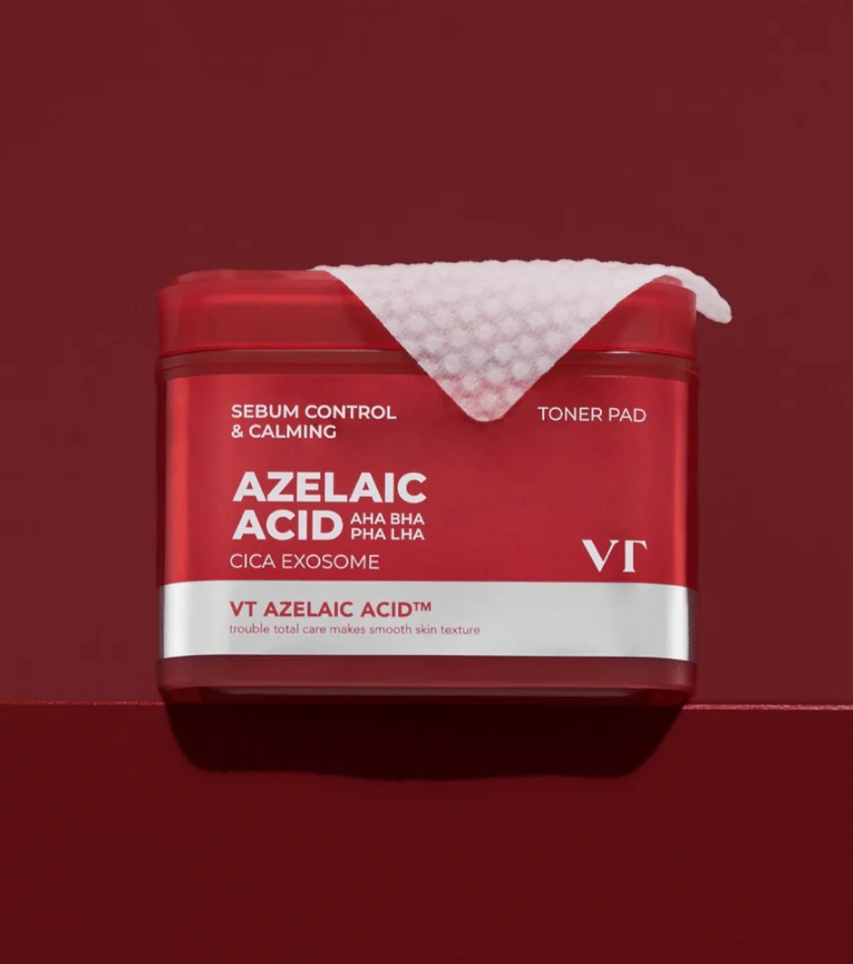 Parte da linha AZ Care, este disco tonificante facial Azelaic Acid CICA Exosome da VT Cosmertics com ácido azelaico foi desenvolvido para tratar a pele com tendência acneica, ajudando a equilibrar, purificar e melhorar a textura desde a primeira utilização.