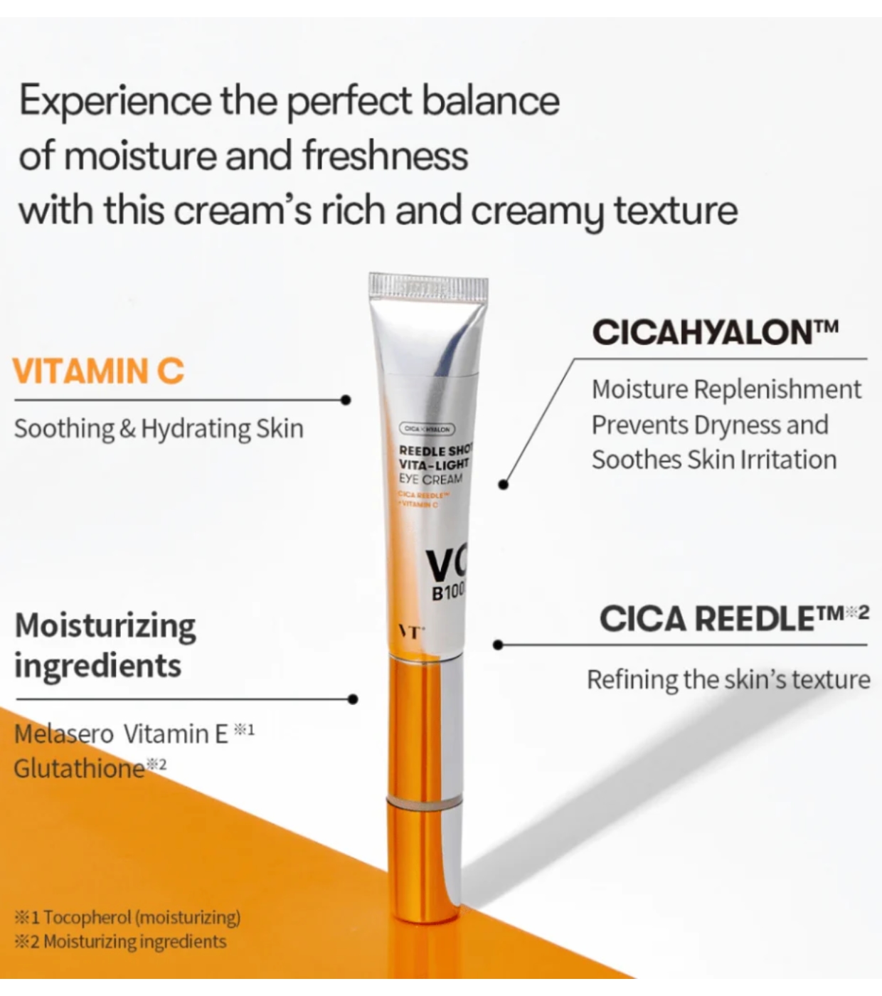Descubra a tecnologia mais inovadora para o cuidado do contorno dos olhos com Reedle Shot Vita-Light da VT Cosmetics .