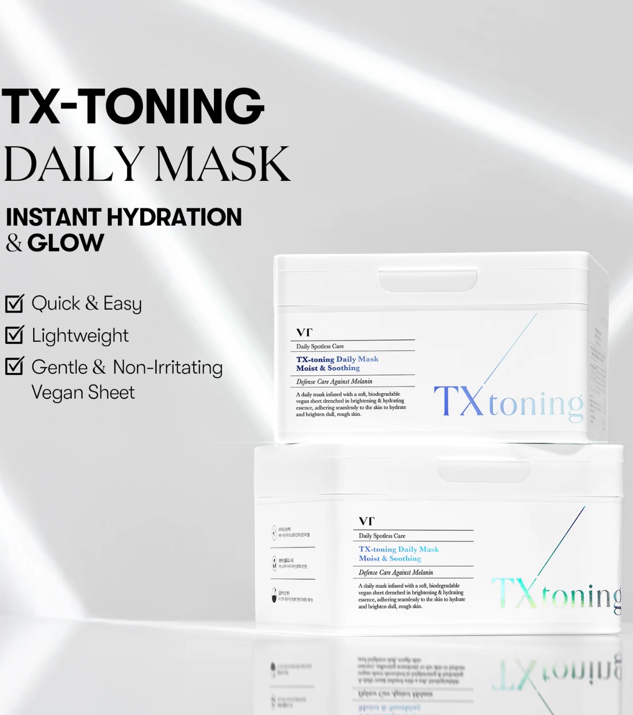 TX Toning Daily Hydrating Mask VT Cosmetics é uma máscara facial diária projetada para hidratar profundamente, acalmar e melhorar a aparência de manchas, marcas de acne e pele opaca, mesmo em peles sensíveis.