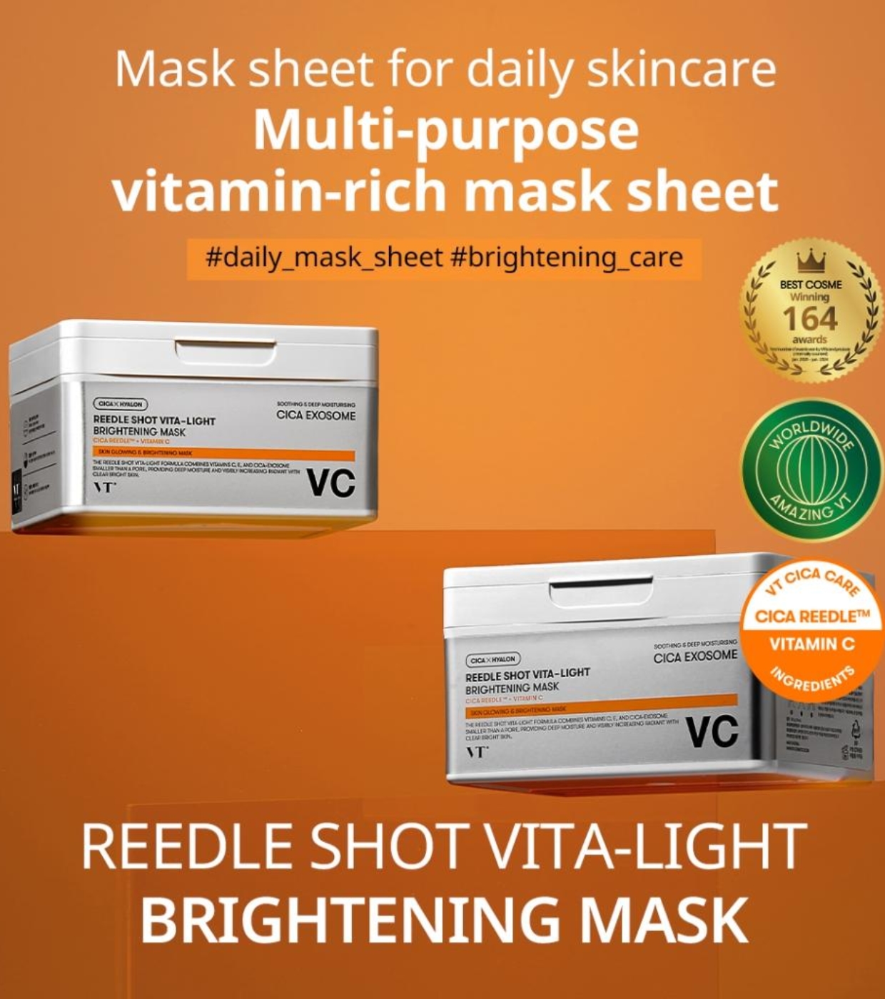 Restaure o brilho da sua pele com a Reedle Shot Vita-Light Brightening Mask da VT Cosmetics , uma máscara facial vegana que transforma visivelmente seu rosto desde a primeira aplicação.