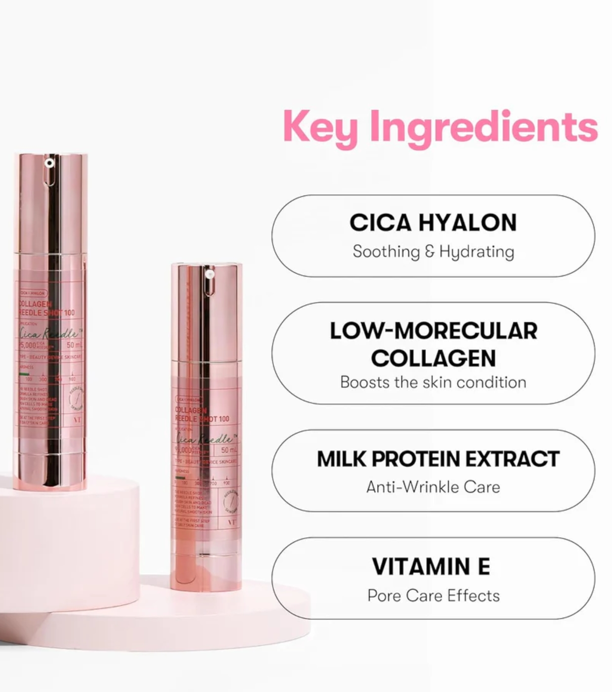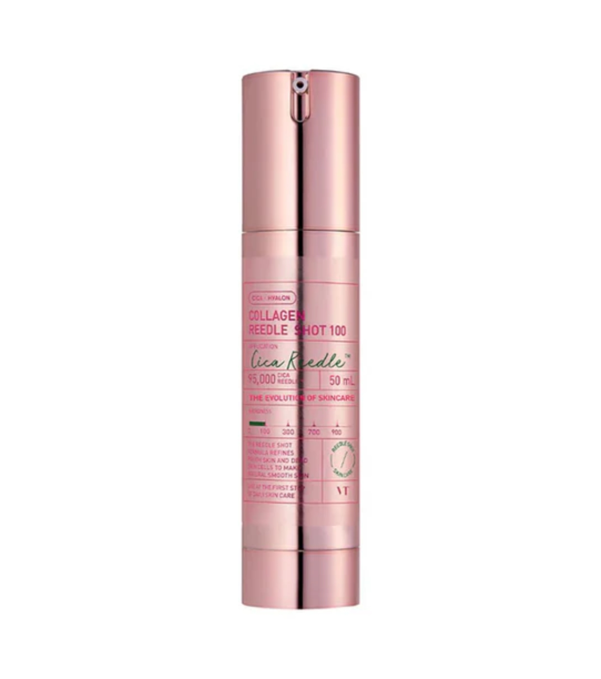 Transforme sua pele desde a primeira aplicação com o inovador Collagen Reedle Shot 100 da VT Cosmetics, um tratamento antienvelhecimento avançado que combina tecnologia de microagulhas com uma fórmula poderosa enriquecida com colágeno de baixo peso molecular.