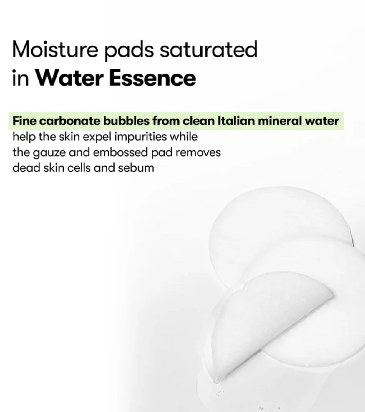Enriquecidos com água mineral carbonatada italiana, esses discos geram microbolhas que penetram nos poros para remover impurezas, enquanto sua textura de gaze em relevo esfolia sem irritação, removendo células mortas e suavizando a textura da pele.