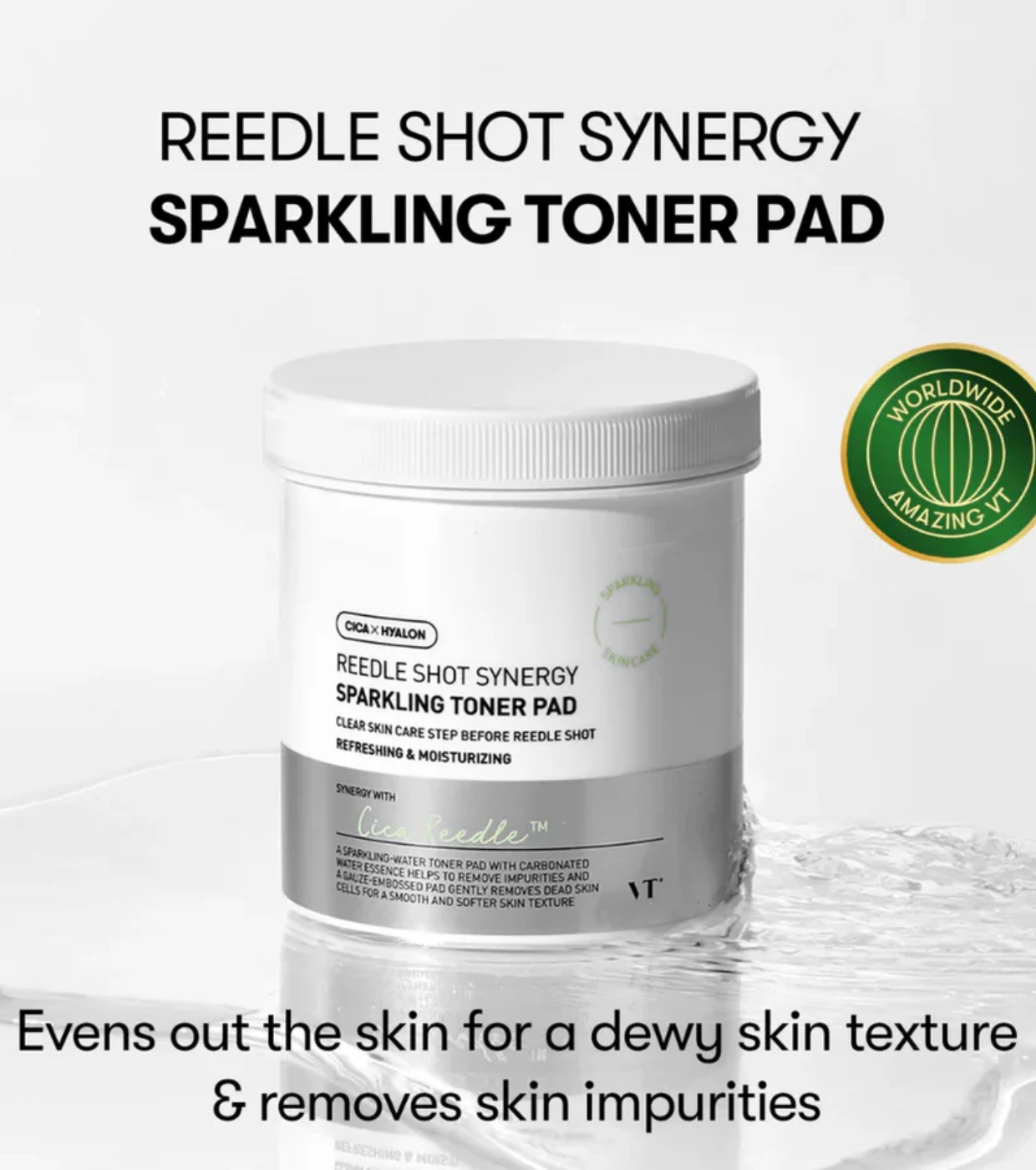 Transforme sua rotina facial com os discos de tônico facial Reedle Shot Synergy Sparkling da VT Cosmetics , discos de tonificação multifuncionais que combinam limpeza profunda, esfoliação suave e hidratação intensa para revelar uma pele mais brilhante, uniforme e equilibrada.