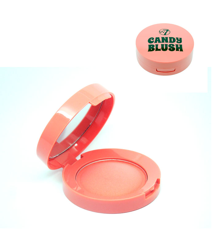Candy Blush cor W7 muito pigmentadas e sedoso que trazem frescor ao seu rosto. Eles são: fofoca, Galáctica, escândalo e pó de anjo. Suas características de empacotamento do espelho ideal para levar com você e que nunca perca você.