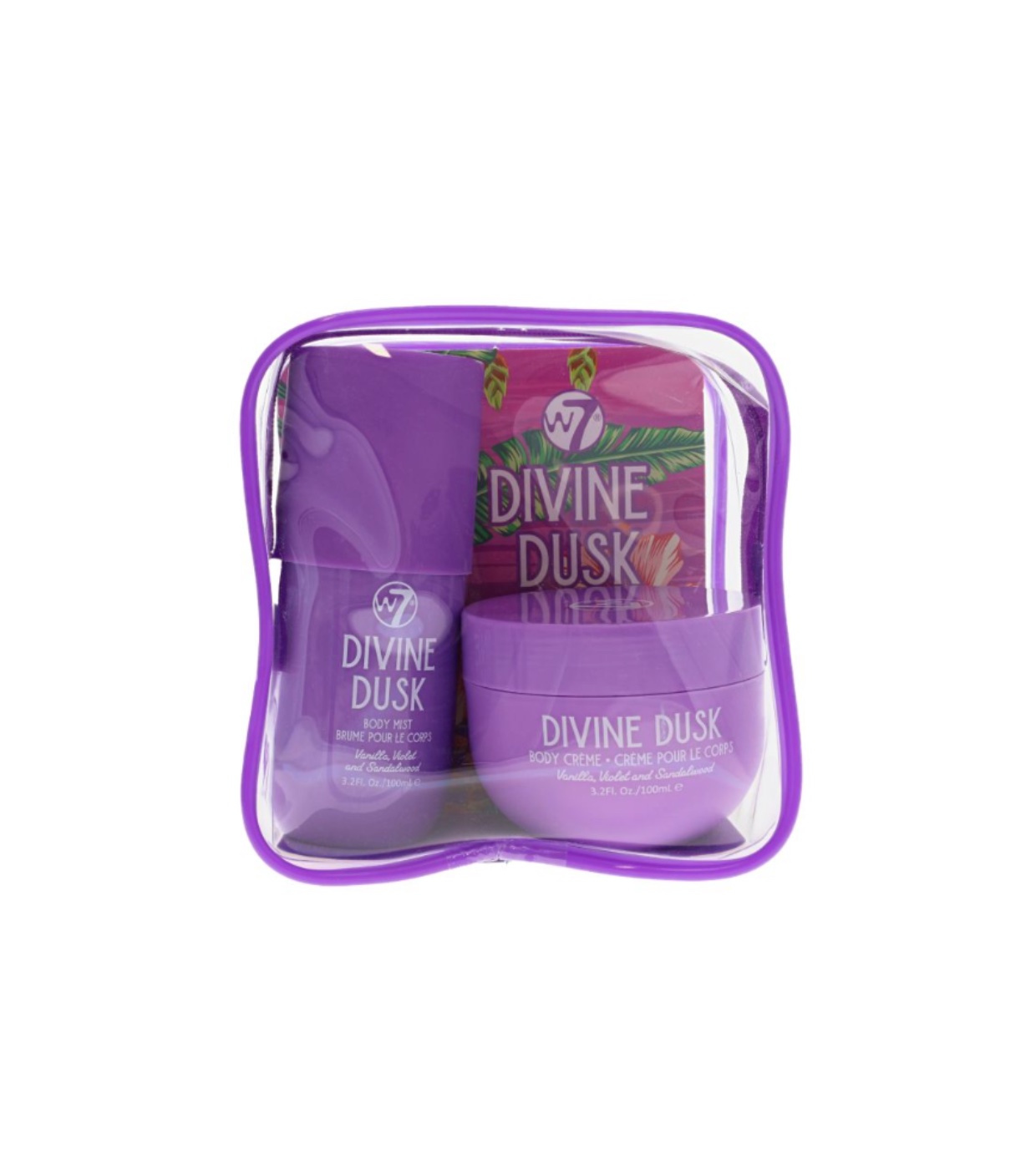 Descubra o conjunto de cuidados corporais W7 Body Mist & Body Creme Divine Dusk , uma dupla de cuidados corporais desenvolvida para levar para qualquer lugar.