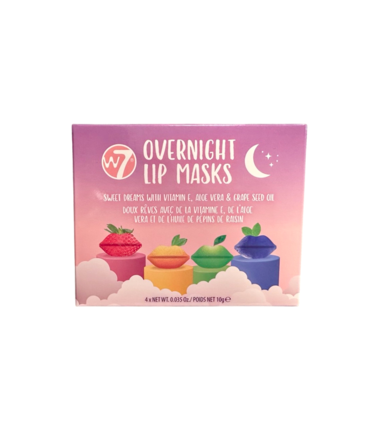 Diga adeus aos lábios secos com o W7 Overnight Lip Masks Set , um pacote de 4 máscaras noturnas enriquecidas com vitamina E, aloe vera e óleo de semente de uva.