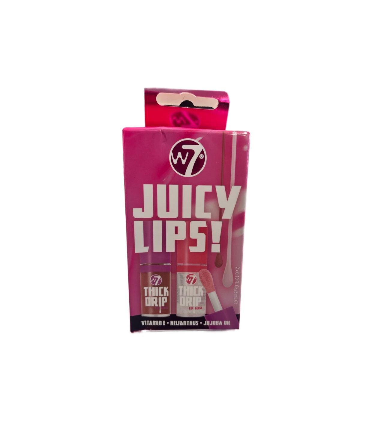 Dê aos seus lábios um acabamento suculento e hidratado com o W7 Juicy Lips Set , um pacote de 2 glosses Thick Drip que proporcionam brilho intenso, maciez e um efeito de volume irresistível.