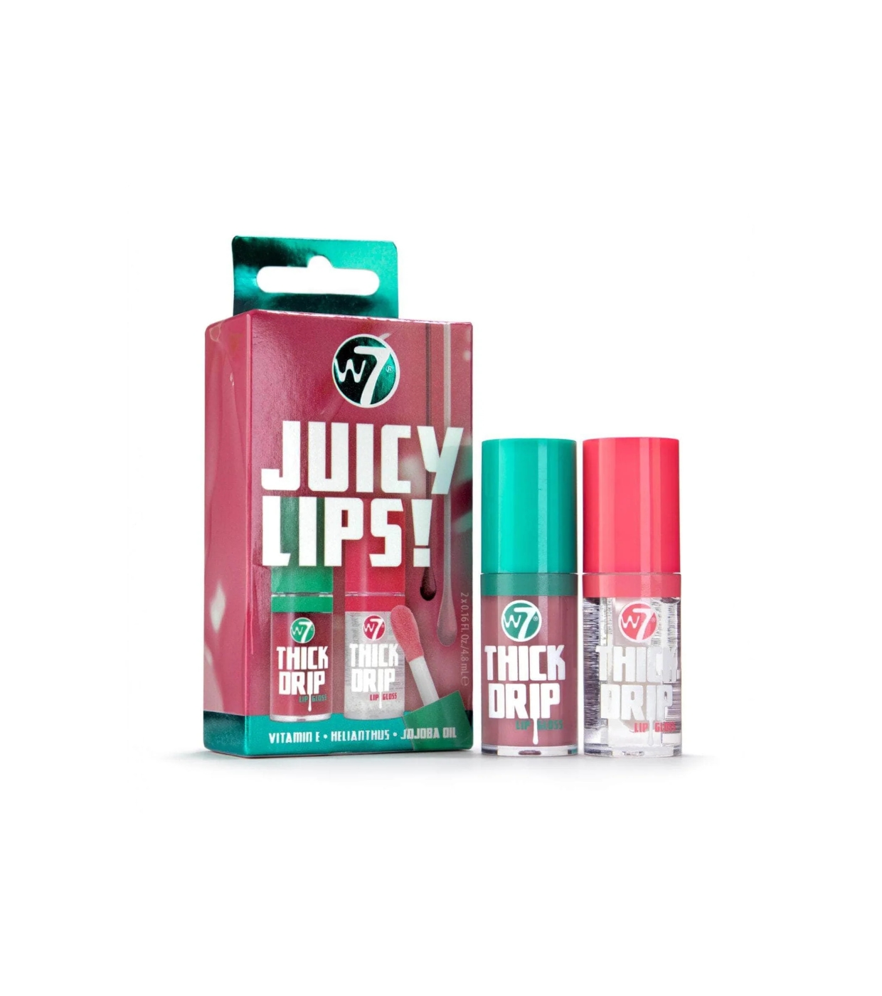 Dê aos seus lábios um acabamento suculento e hidratado com o W7 Juicy Lips Set , um pacote de 2 glosses Thick Drip que proporcionam brilho intenso, maciez e um efeito de volume irresistível.