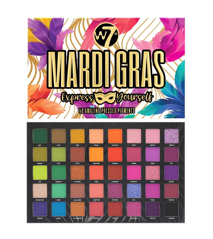 A paleta de pigmentos prensados W7 Mardi Gras é a paleta de que você precisa para dar asas à imaginação sob o lema \ "Expresse-se \".
