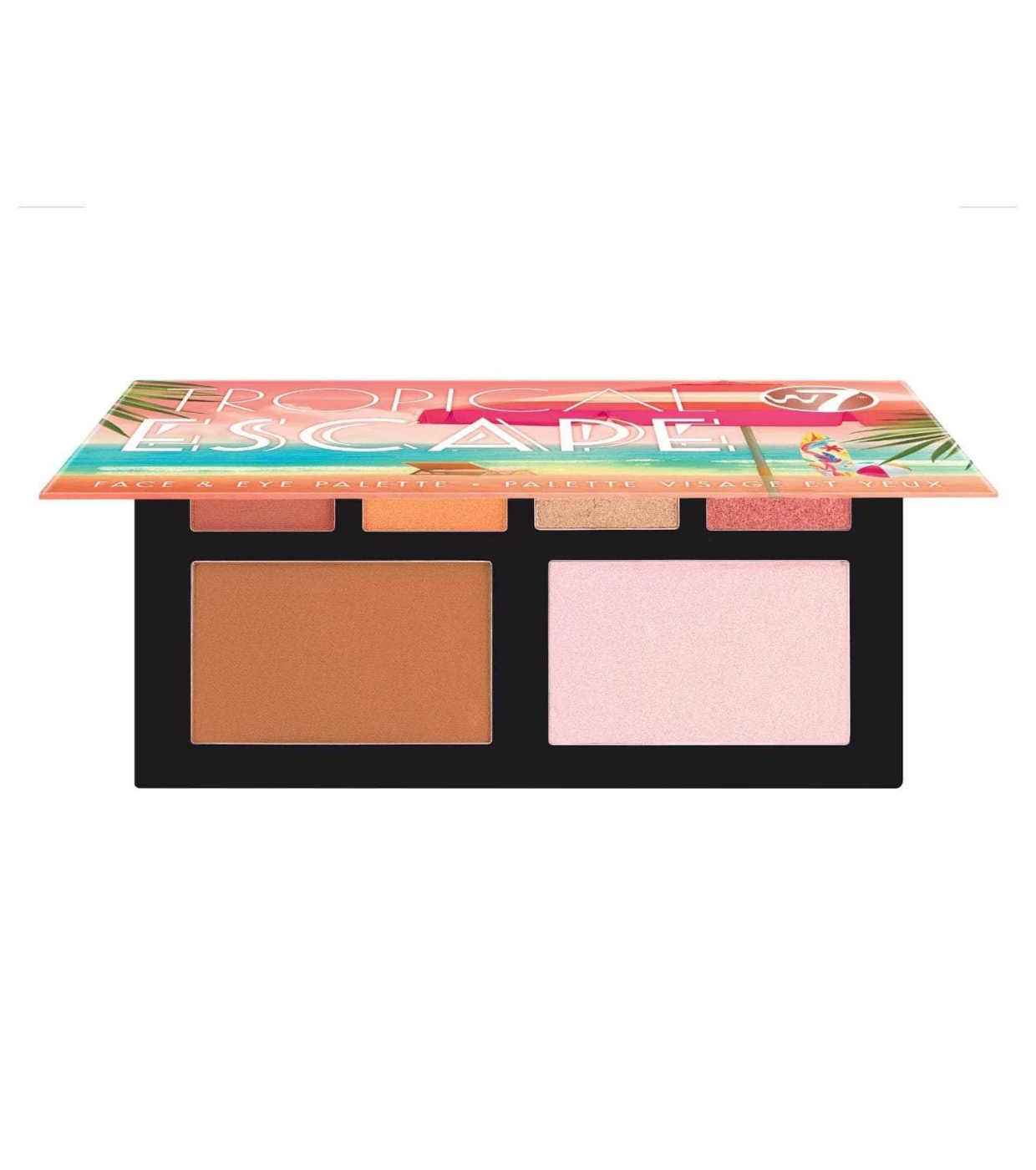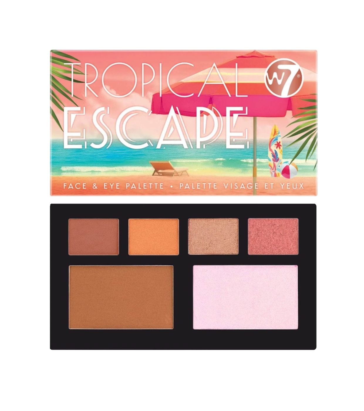 Inspirado nas cores quentes do pôr do sol na praia, W7 oferece uma mistura equilibrada de acabamentos foscos, metálicos e brilhantes para realçar os olhos e o rosto com um toque irresistível da ilha.