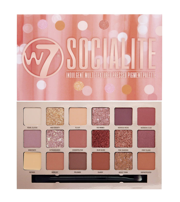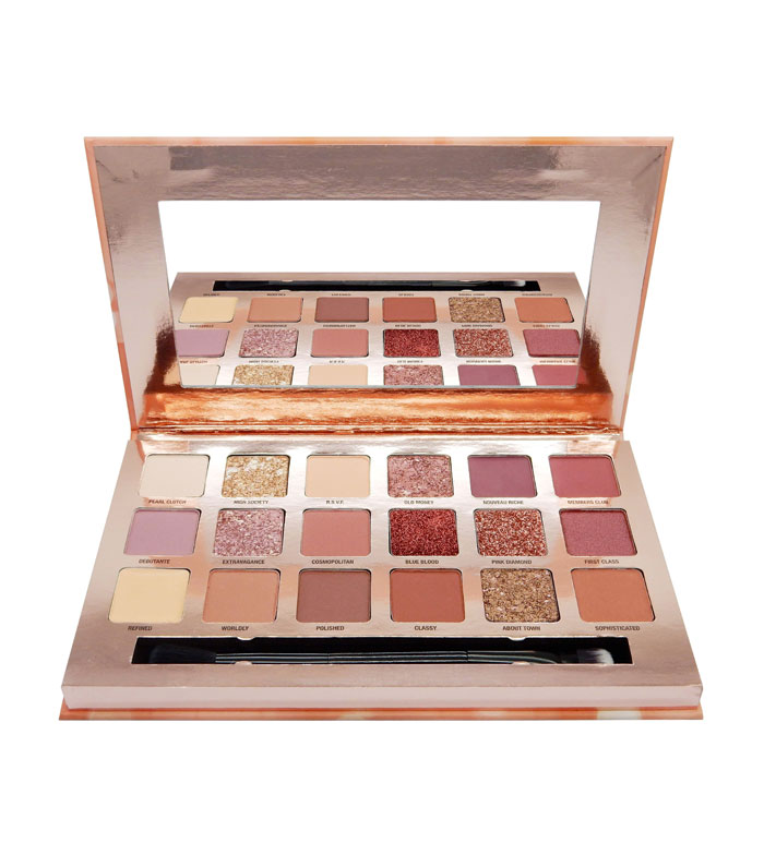 É uma paleta de sombras que consiste em 18 tons em mate, glitter e acabamentos brilhantes.