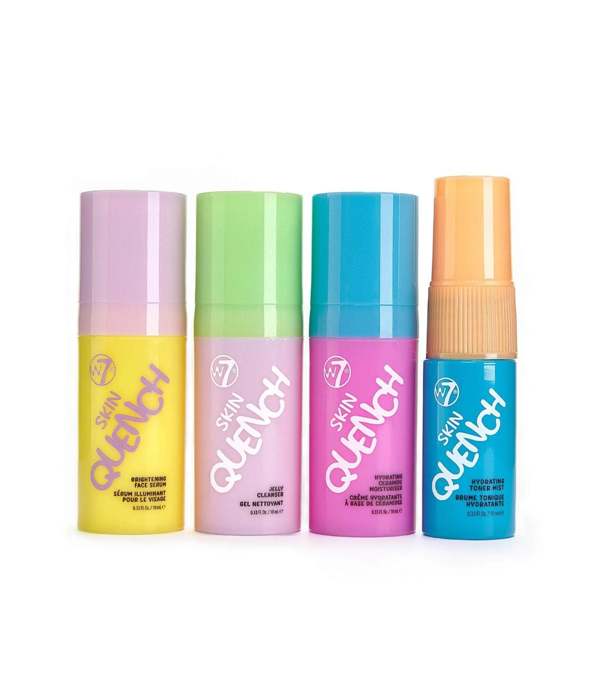 Hidrate e refresque sua pele a qualquer momento com o W7 Skin Quench Cuties Set , um pacote com 4 mini bastões faciais, perfeito para levar sempre com você.