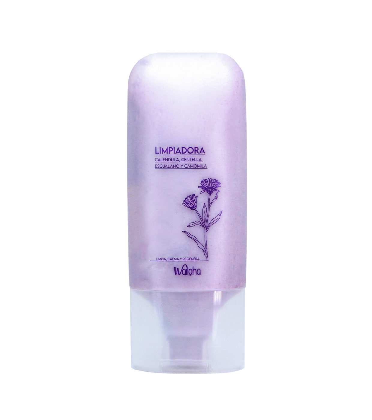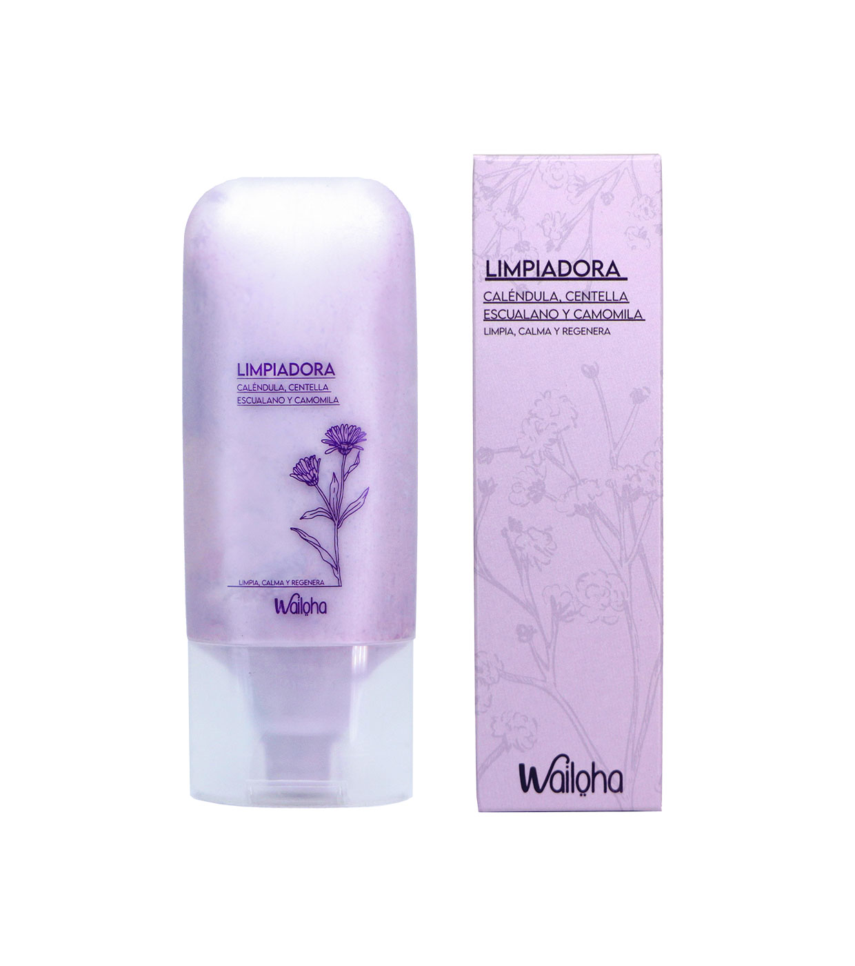 Descubra o cuidado indulgente do Limpador Calmante e Regenerador de Wailoha, uma experiência única de limpeza facial enriquecida com calêndula, gotu kola, esqualano, camomila e boswellia serrata.