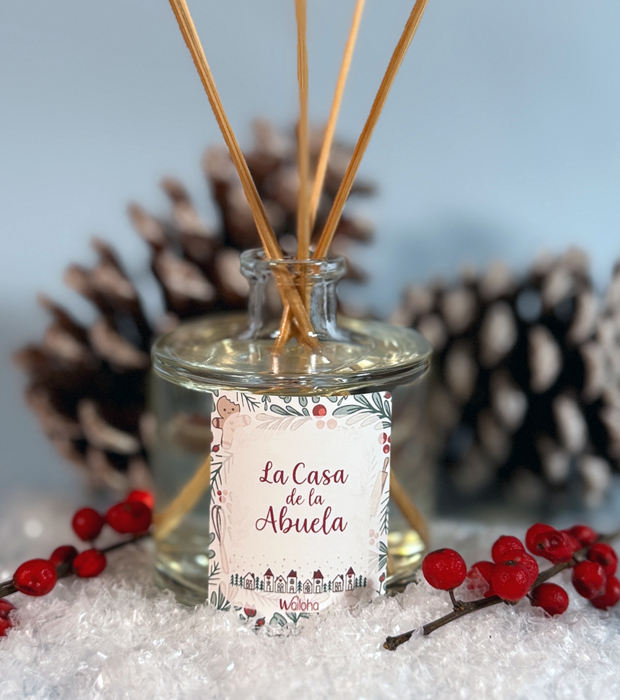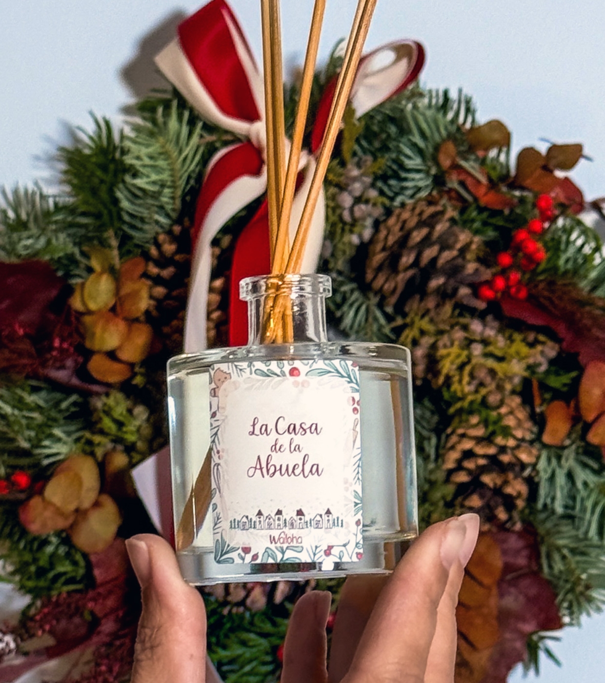 Desfrute do aroma irresistível do ambientador mikado de edição limitada de Natal La Casa de la Abuela Wailoha durante todo o dia.