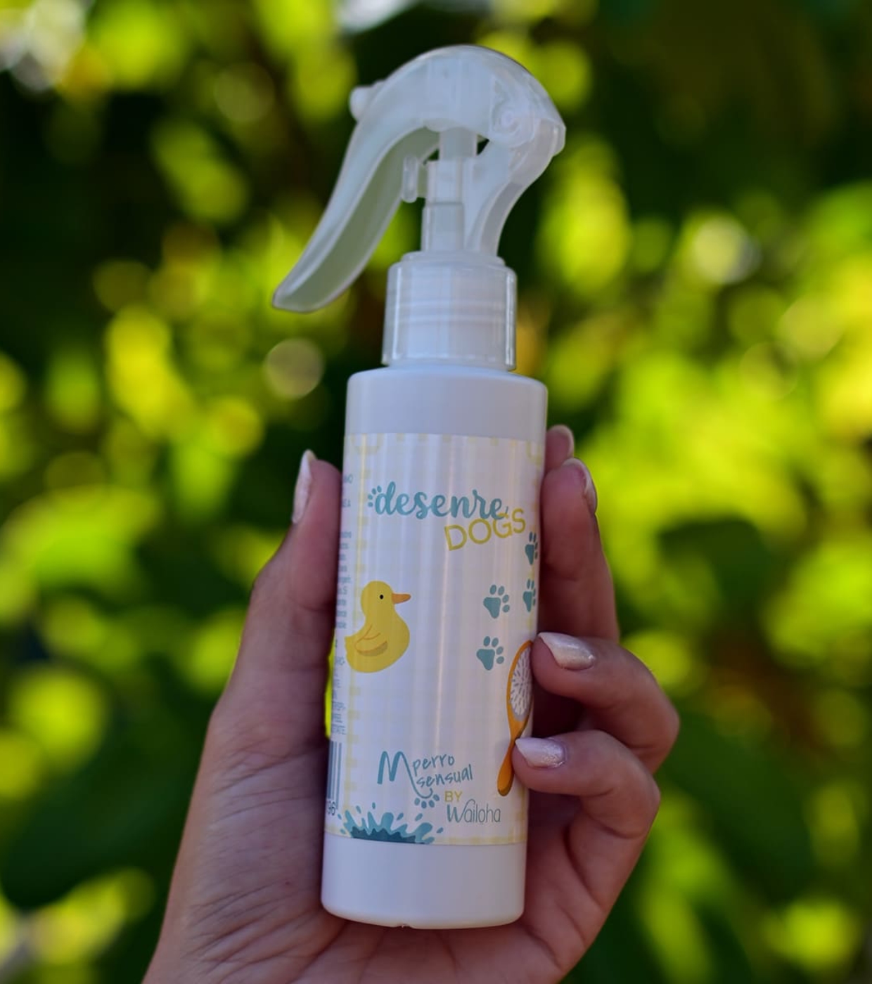 Este spray desembaraçante Desenredogs da coleção Cursed Sensual Dog da Wailoha pode ser usado seco ou molhado.