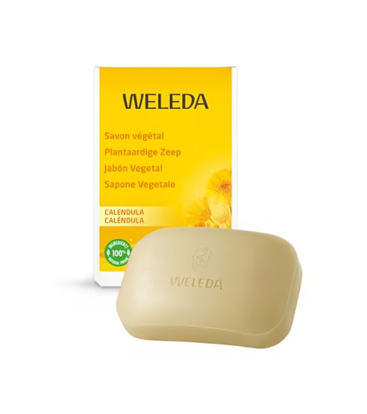 O sabonete vegetal de calêndula contém extratos de calêndula e camomila, daí seu aroma delicado e efeito nutritivo, especialmente indicado para a pele delicada e sensível dos bebês.