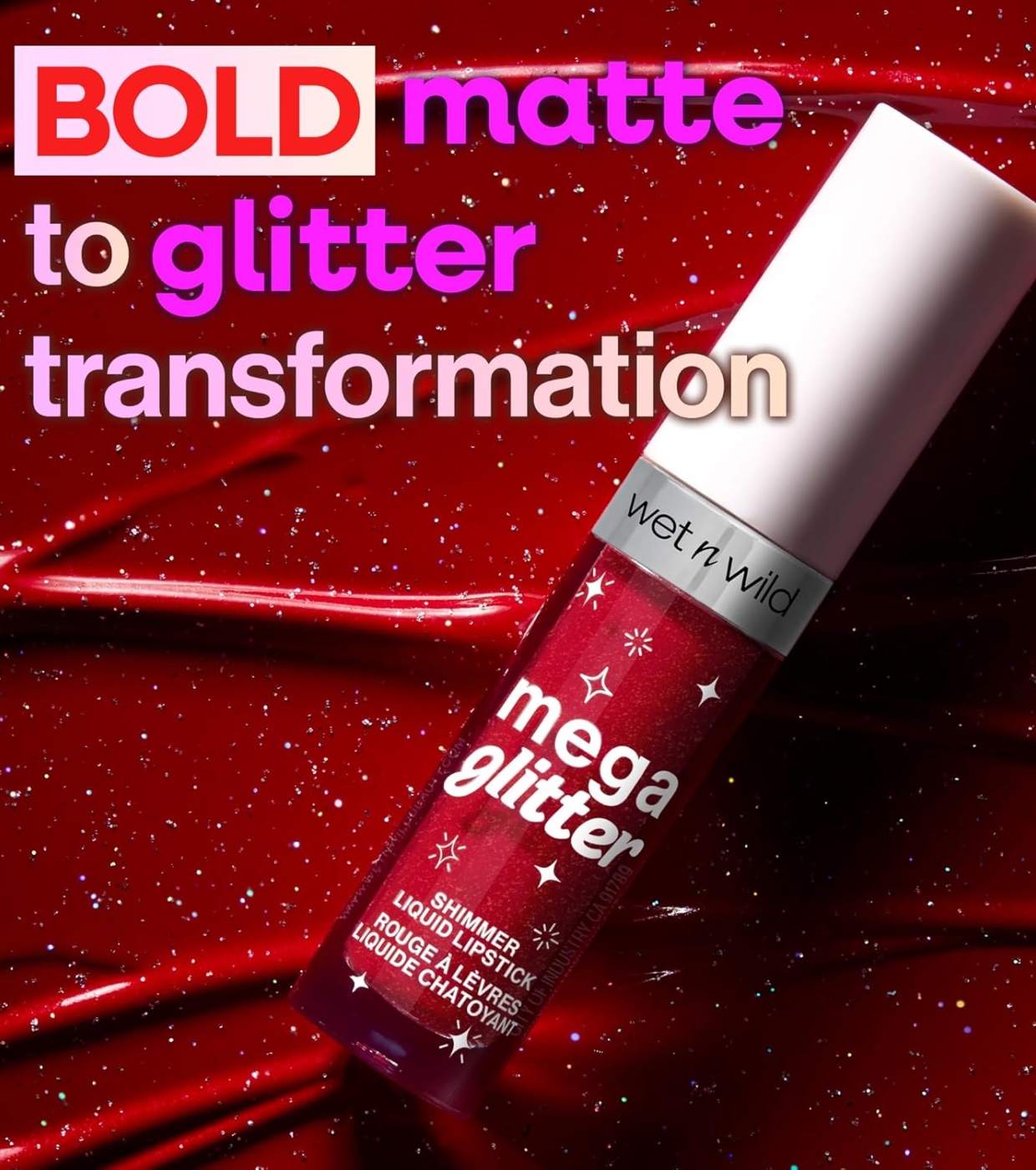 Prepare-se para ficar deslumbrado! O Mega Glitter Shimmer Liquid Lipstick da wet n wild transforma seu visual em segundos com sua fórmula inovadora que vai de um acabamento matte a um brilho deslumbrante simplesmente pressionando seus lábios.
