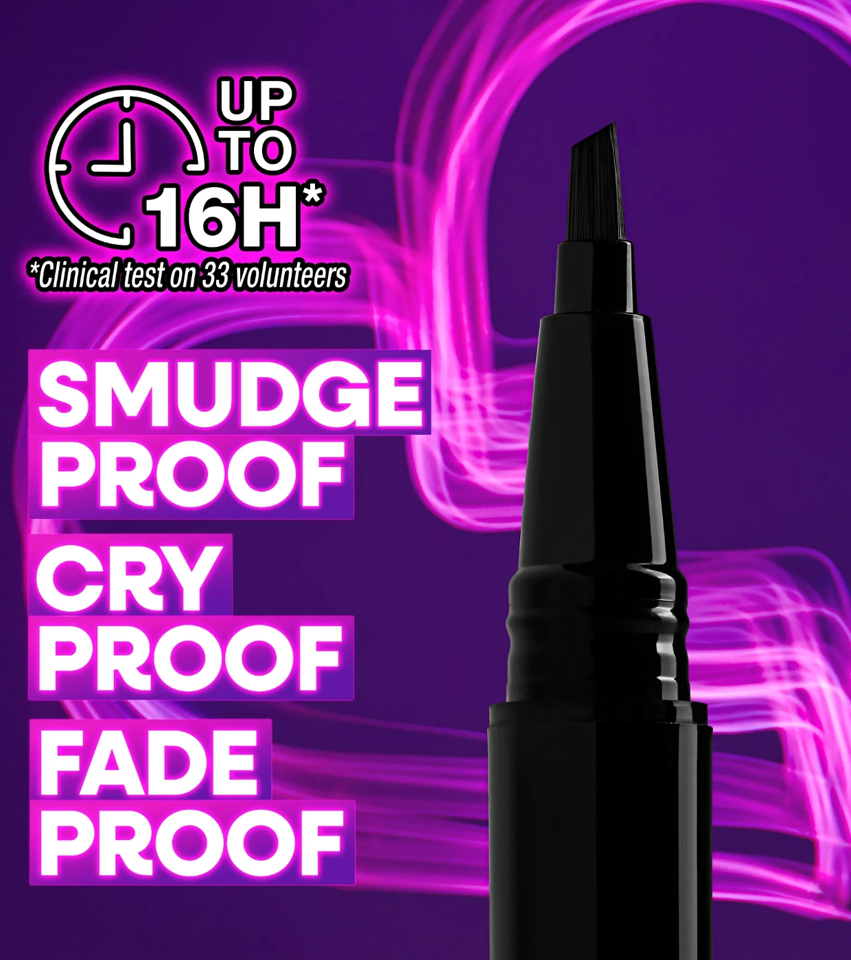 Graças à sua tecnologia à prova de rasgos, manchas e desbotamento, este delineador dura até 16 horas sem desbotar. Ideal para qualquer ocasião, desde um look natural do dia a dia até um delineador dramático para a noite.