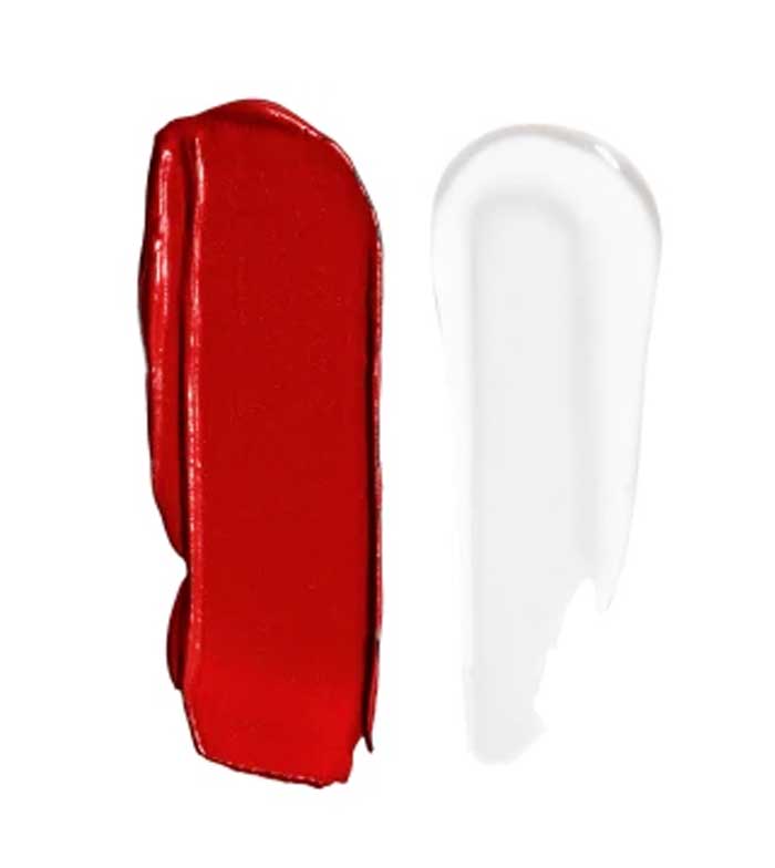 Este batom de duas pontas oferece um tom intenso e duradouro em uma ponta e um acabamento brilhante na outra.