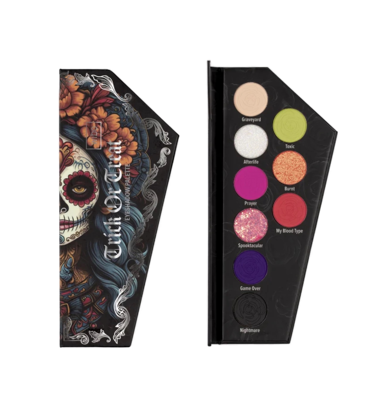 A paleta de sombras Wibo Wibo contém 9 tonalidades intensamente pigmentadas com acabamentos fosco e glitter, ideais para criar uma maquiagem espetacular para a noite Halloween.