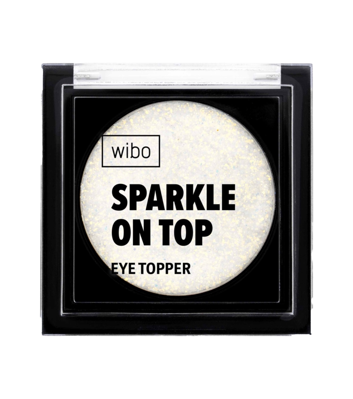 Topper intensamente brilhante com manchas de glitter iridescente para maquiagem de olhos e rosto.