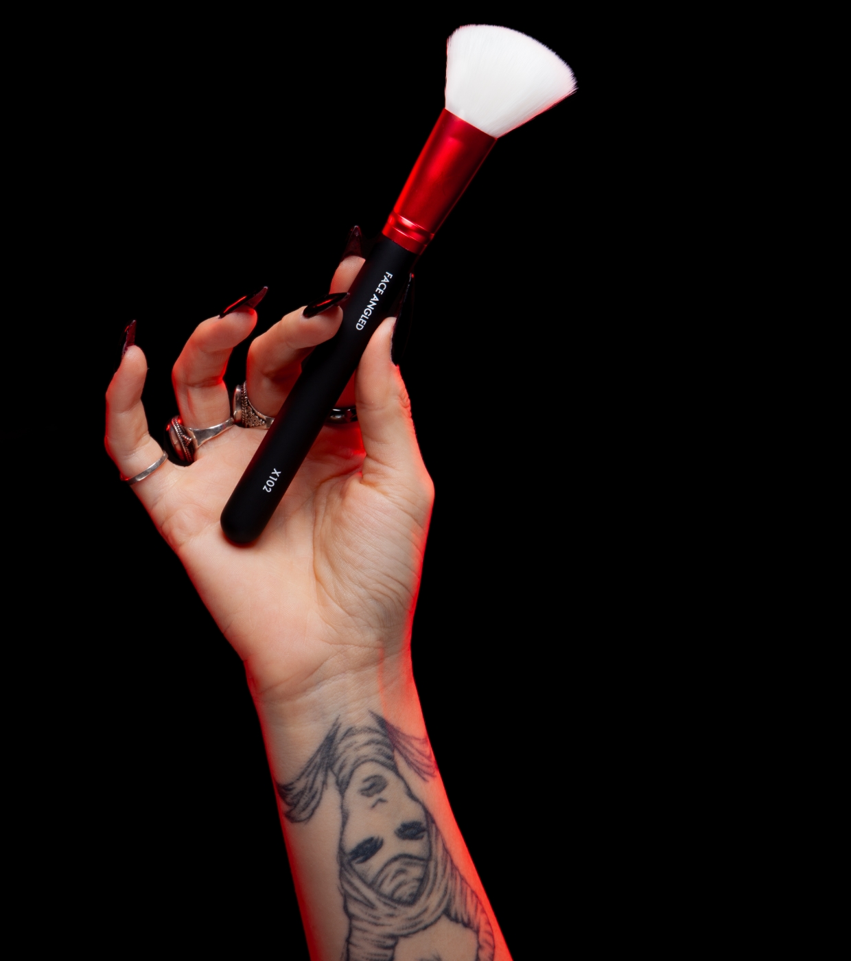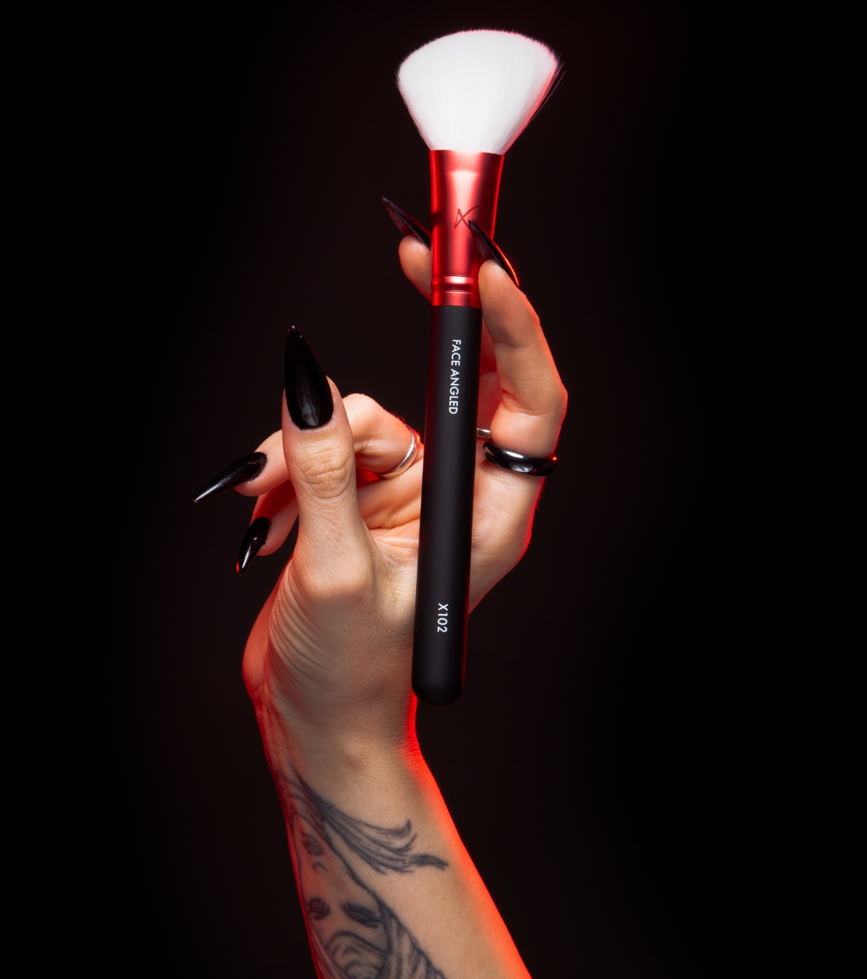 O pincel facial X102: Face Angled da Xtra Pro MakeUp é uma revolução em XTRAfiber, criado para se assemelhar ao pelo de cabra natural, sendo ao mesmo tempo VEGANO.