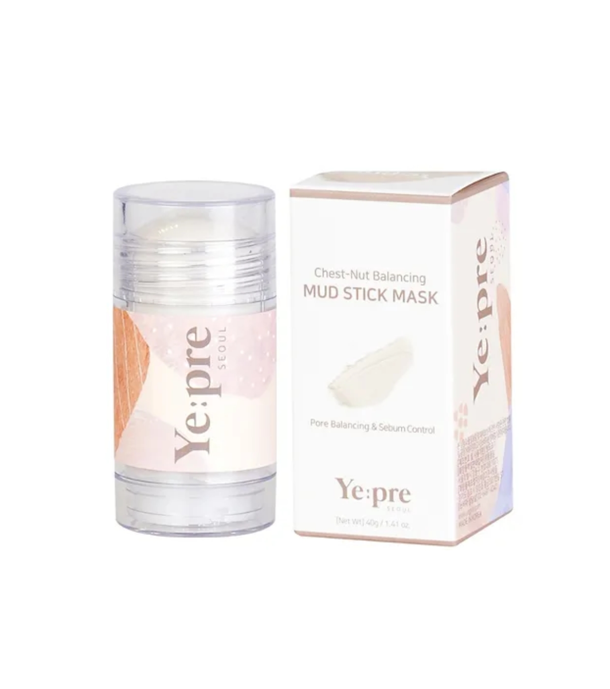 A máscara facial em bastão Chest-Nut Balancing da Ye:pre é feita com ingredientes de origem natural, sendo a castanha o seu principal ingrediente.