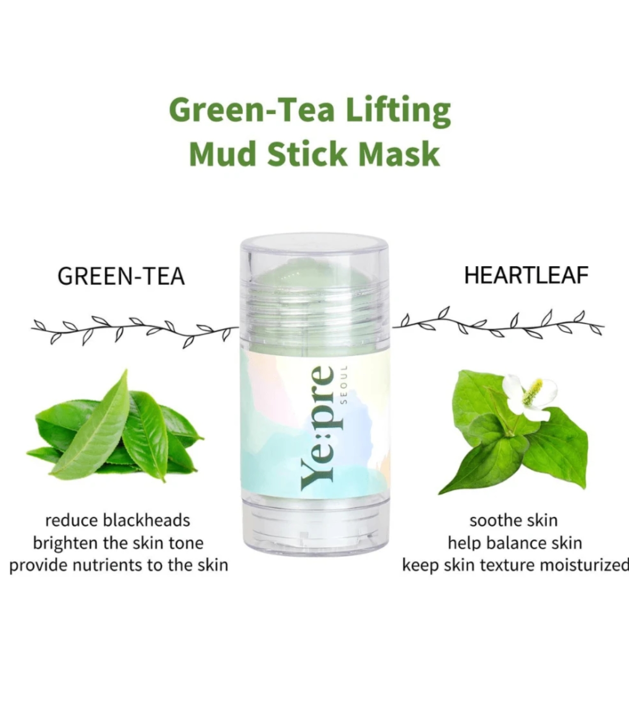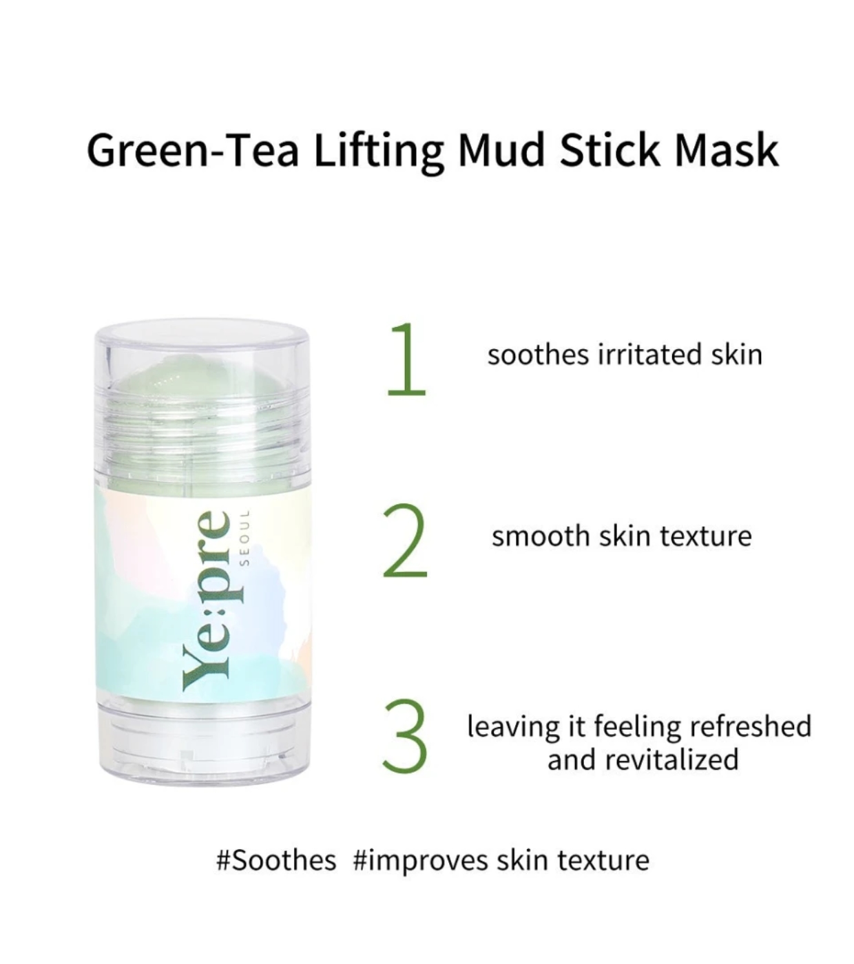 A máscara facial em bastão Green-Tea Lifting da Ye:pre é ideal para cuidar e melhorar a pele de forma prática e eficaz.